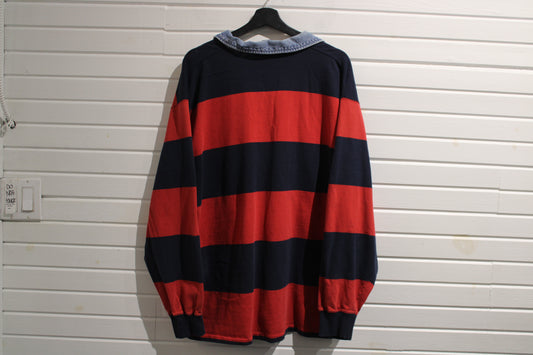 Polo Sport Ralph-Lauren Rugby Shirt | Vintage 1990s Denim Collar Block Stripe Top | Classic Sportswear