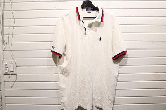 Polo Ralph-Lauren Polo Shirt | Vintage Classic Fit White Polo | Red and Navy Detail Short Sleeve | Casual Preppy Shirt