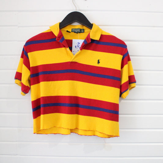 Polo Ralph-Lauren Rugby Shirt | Vintage 90s Cropped Reworked Striped Polo Shirt | Streetwear Casual Top