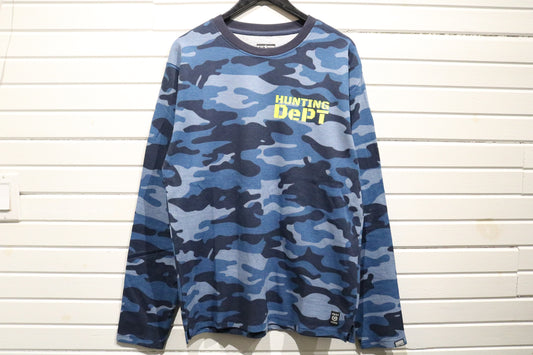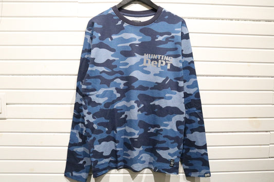 Hunting Dept Camo Long Sleeve Shirt | Vintage Blue Camouflage Thermal Top | Outdoor Sportswear