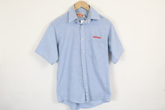 Red-Kap DENSO Button-Up Shirt | Vintage Light Blue Short Sleeve Work Top | Classic Uniform Style