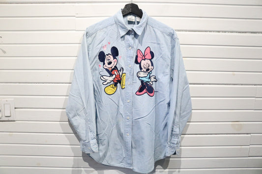 Disney Mickey-Mouse Minnie-Mouse Button-Up Shirt | Vintage 1990s Classic Cartoon Denim Shirt | Collectible Casual Wear