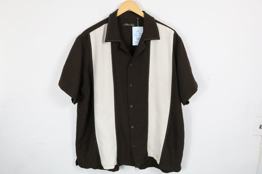 Milano-Bay Bowling Shirt | Vintage Two-Tone Button-Up Short Sleeve Top | Retro Casual Shirt