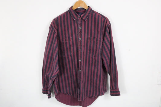 GAP Striped Button-Up Shirt | Vintage 1990s Burgundy-Navy Vertical Stripe Long Sleeve | Classic Casual Menswear Top
