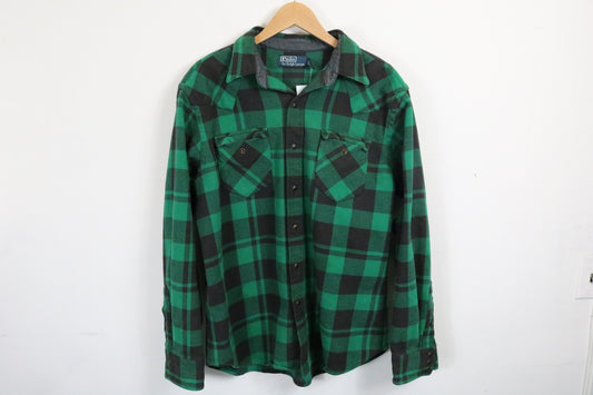 Polo Ralph-Lauren Plaid Button-Up Shirt | Vintage Green-Black Flannel Top | Classic Men's Shirt