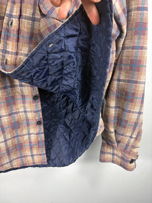 Sears Plaid Lined Button-Up Shirt | Vintage 1980s Quilted Flannel Workwear Shirt | Classic Outdoor Layer