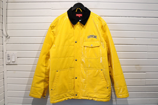 Supreme Jacket | Vintage Yellow Padded Snap-Button Outerwear | Black Cord Collar Utility Coat