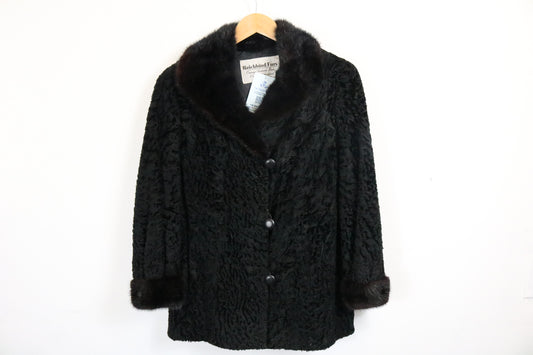 Reichbind Furs Persian Lamb Coat | Vintage 1950s Black Fur Collar Swing Jacket | Elegant Formal Outerwear