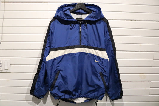 Nike Hooded Windbreaker Jacket | Vintage 90s Blue Color Block Pullover | Classic Retro Sportswear