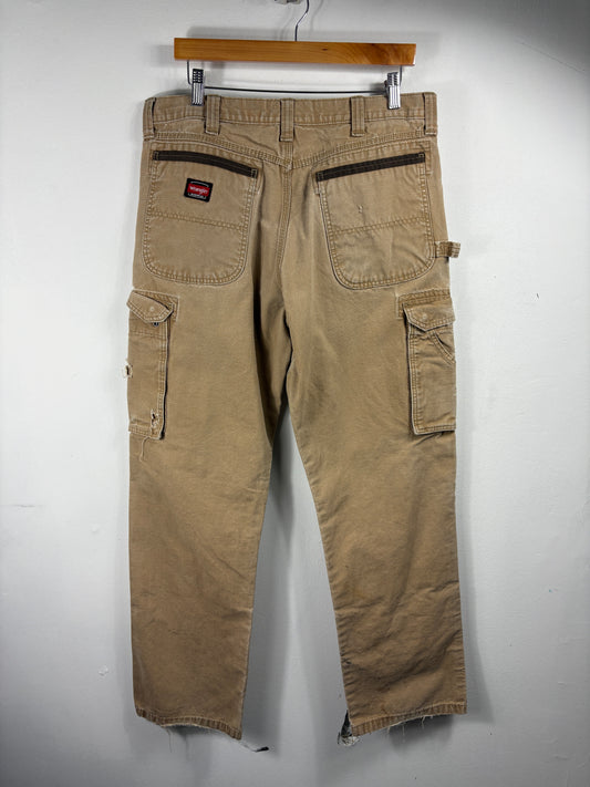 Wrangler Cargo Work Pants | Vintage 90s Utility Carpenter Trousers | Heavy-Duty Canvas Bottoms