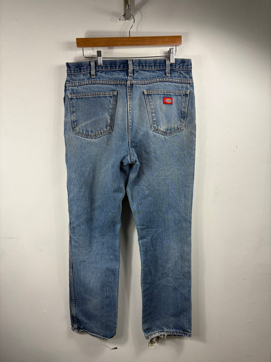 Dickies Blue Jeans | Vintage Faded Workwear Denim Pants | Distressed Hem Straight Fit