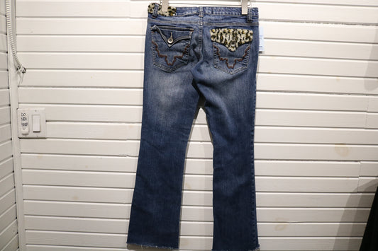 Farlow-Jeans Bootcut Denim Pants | Vintage 2000s Animal Print Pocket Western Jeans | Furry Trim Statement Bottoms
