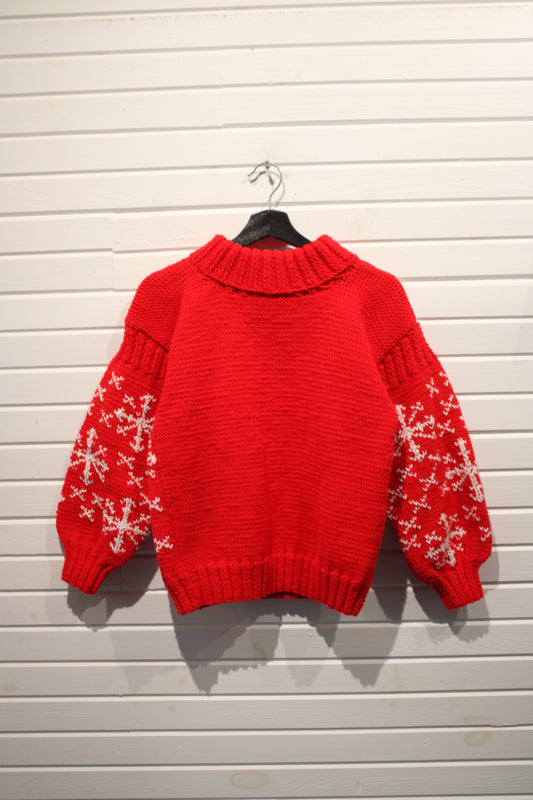 Hand-Knit Snowflake Sweater | Vintage 1980s Holiday Knit Pullover | Chunky Red and White Winter Jumper