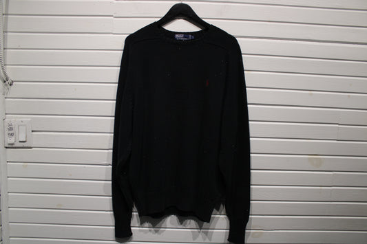 Vintage Polo-Ralph-Lauren Crewneck Sweater | Classic Black Knit Long Sleeve | Embroidered Logo Pull | Size Large