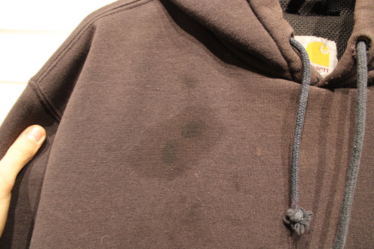 Vintage Carhartt Hoodie | Workwear Faded Brown Pullover Sweatshirt | Paint Stains Utility Hoody
