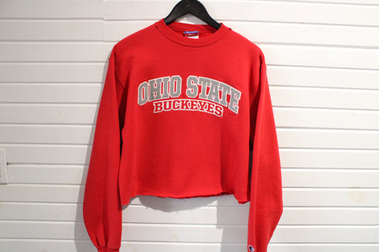 Champion Ohio-State-Buckeyes Sweatshirt | Vintage 90s Raw Hem College Crewneck | Cropped Pullover