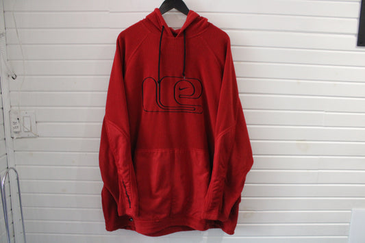 Nike-Limited-Edition Hoodie | Vintage 2000s Ribbed Pullover Sweatshirt | Bold Red Graphic Hoody