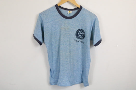 Federal Law Enforcement Ringer T-Shirt | Vintage 1980s Glynco-Georgia Training Center Tee | Classic Blue Short Sleeve Top