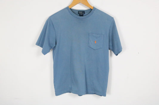 Polo Ralph-Lauren T-Shirt | Vintage Pocket Tee Classic Logo Top | Relaxed Blue Short Sleeve Shirt