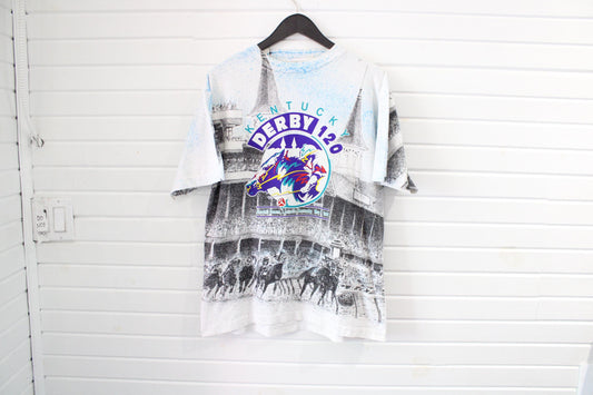 Kentucky Derby 120 T-Shirt | Vintage 1994 All-Over Horse Racing Graphic Tee | Men's Size XL | Churchill Downs Collectible
