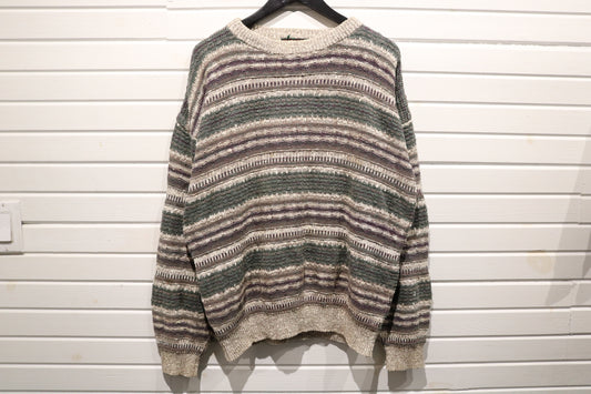 Steel-Sport Sweater | Vintage 90s Textured Pattern Knit Pullover | Classic Striped Knitwear