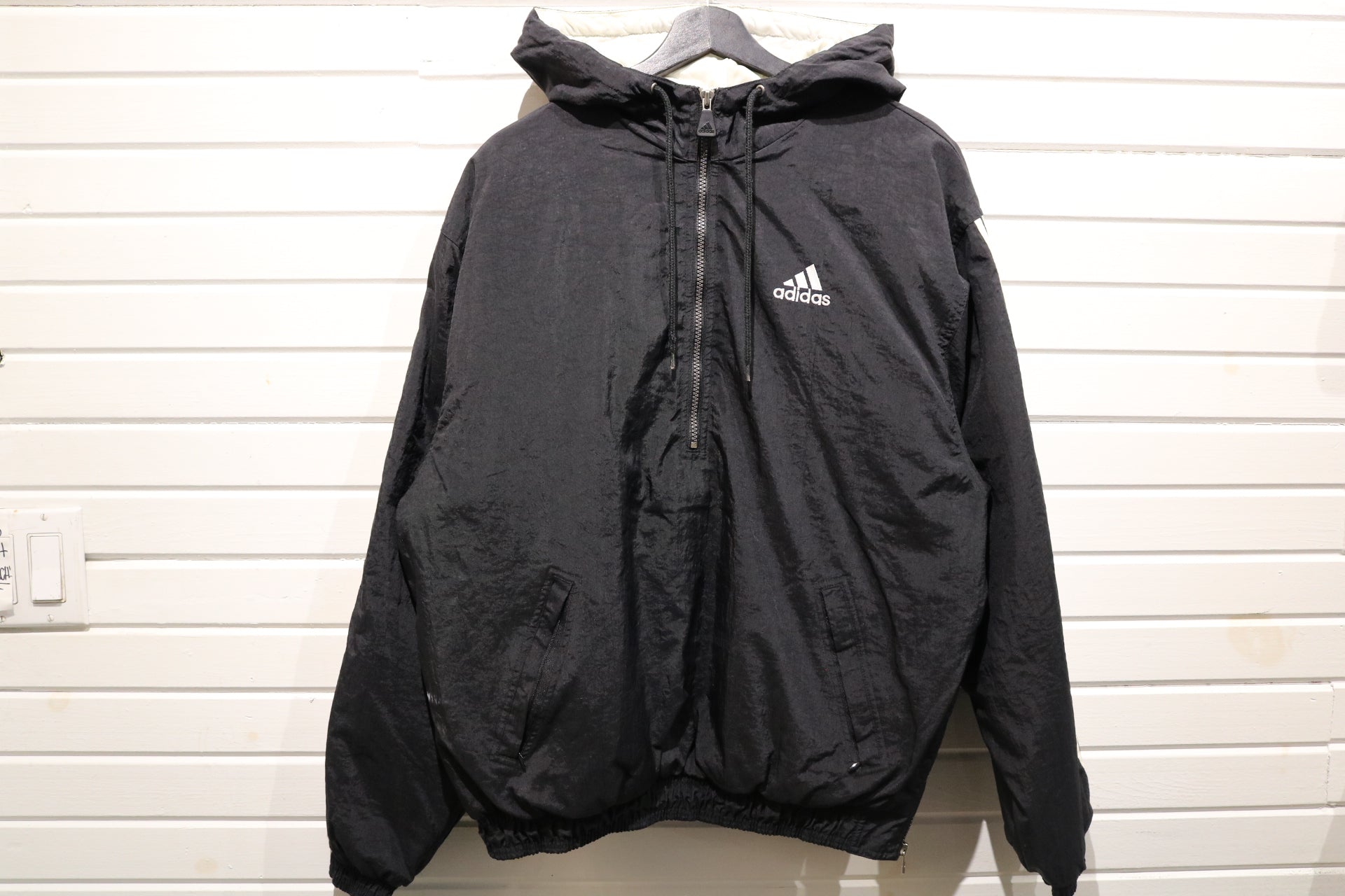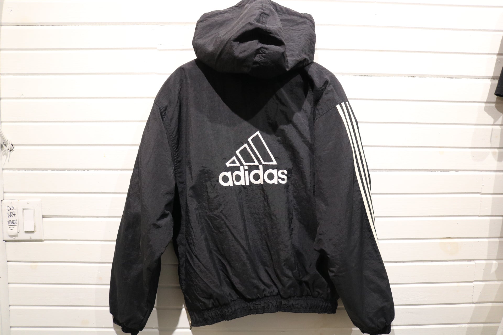 Black Adidas windbreaker with hood and large back logo