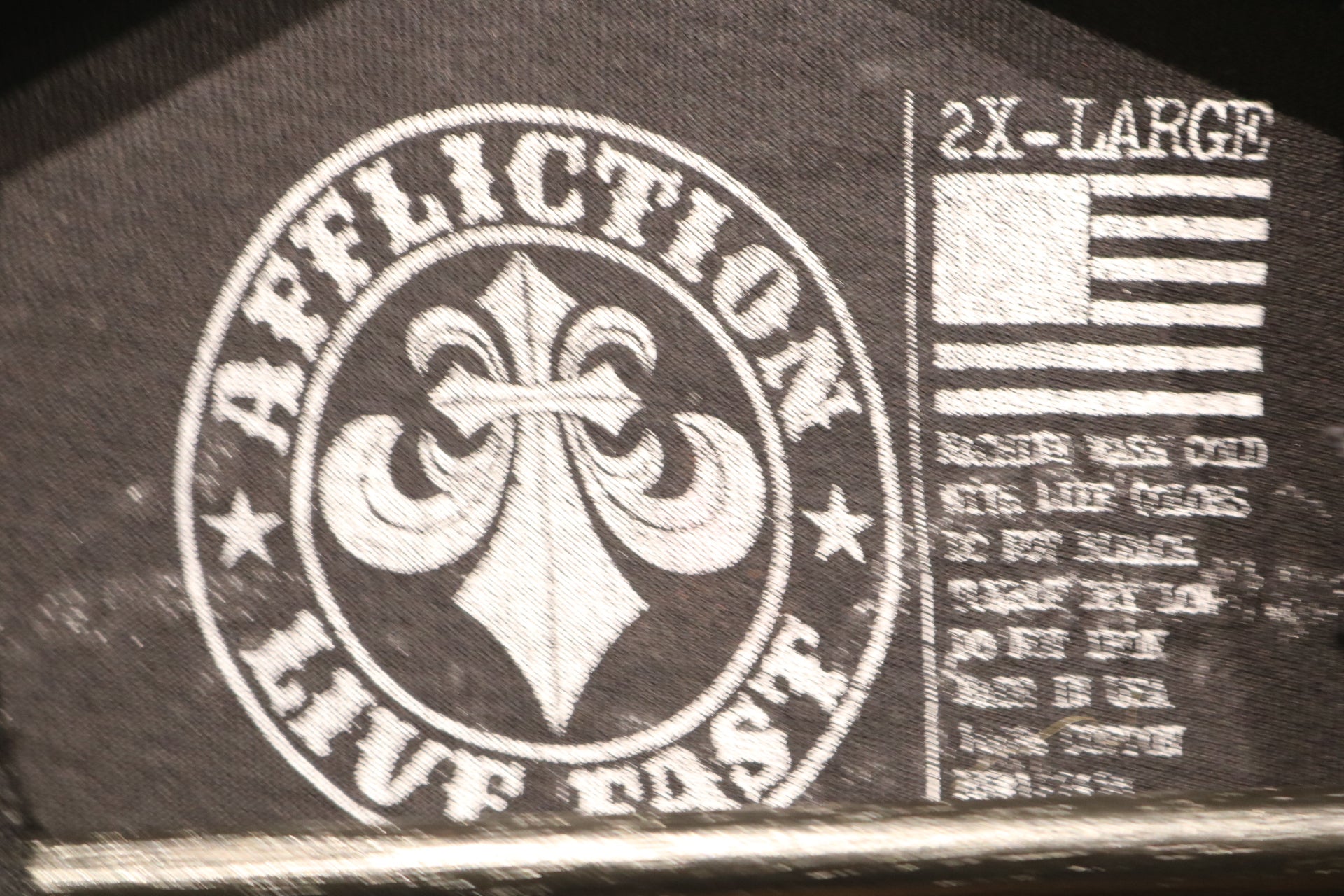 Distressed black graphic t-shirt featuring bold eagle and crest artwork and signature Affliction branding.