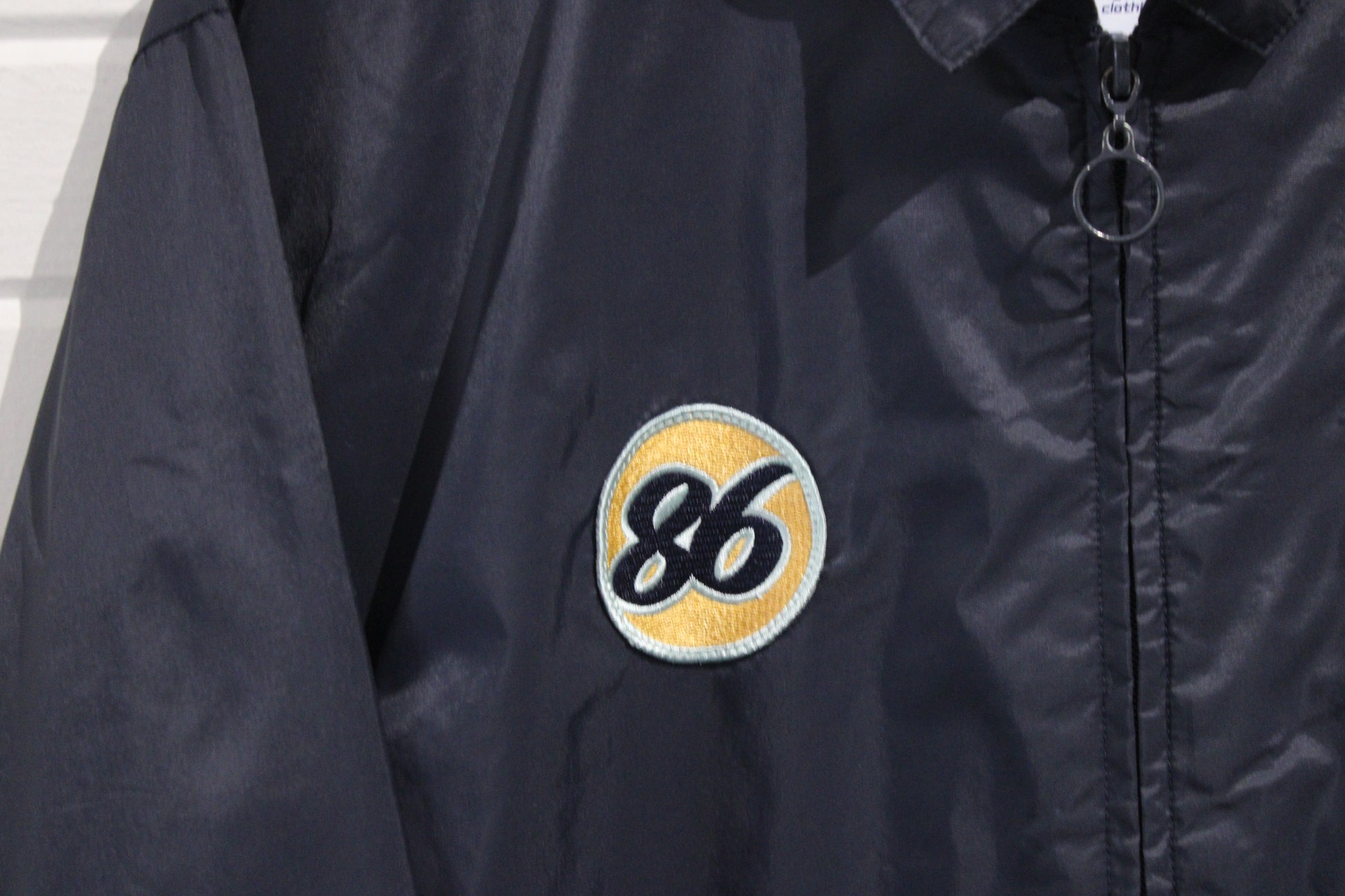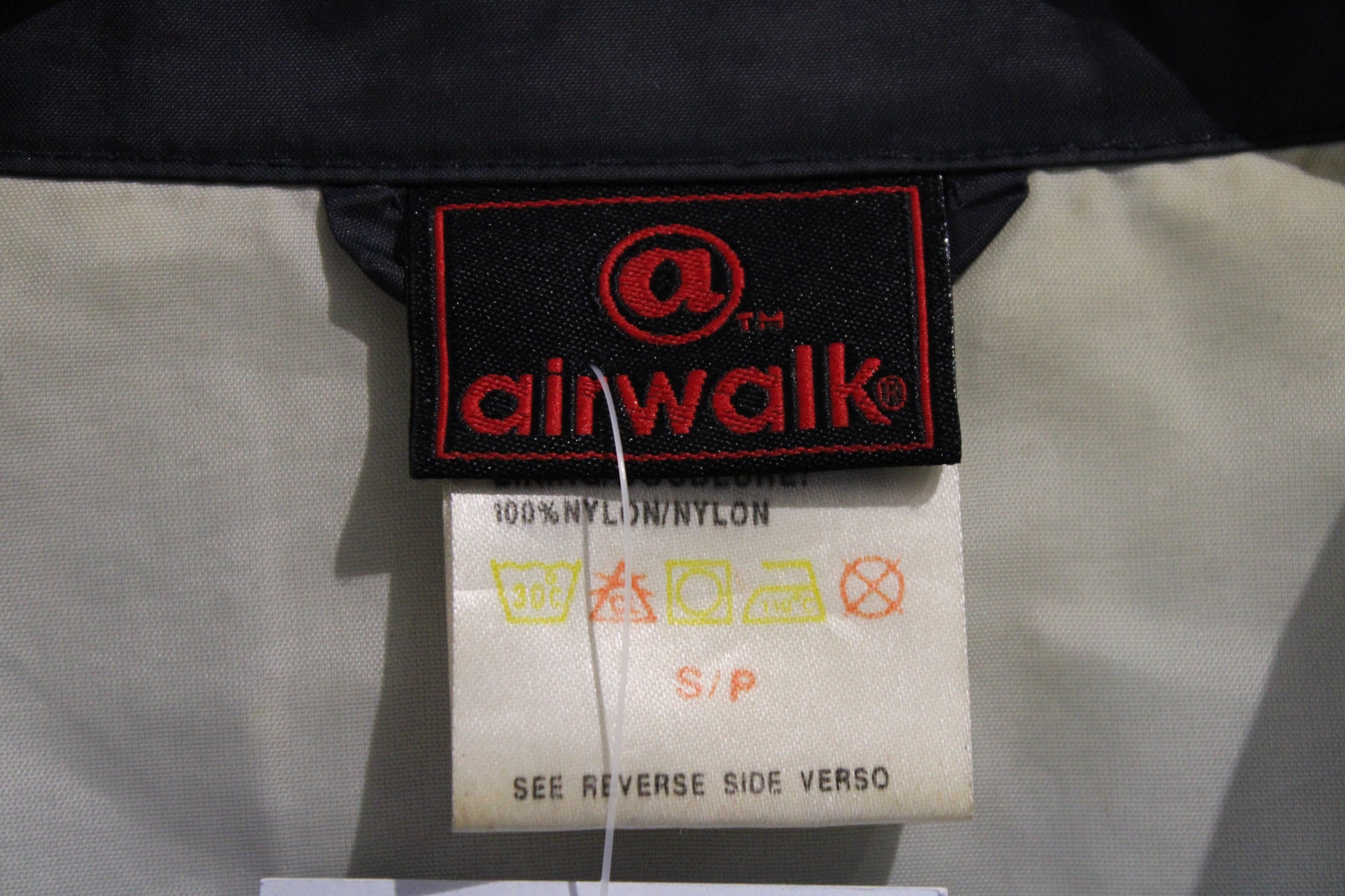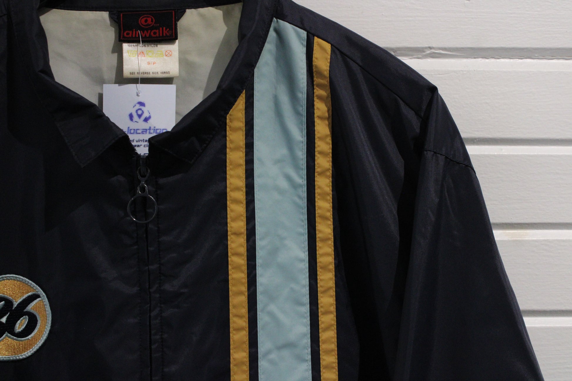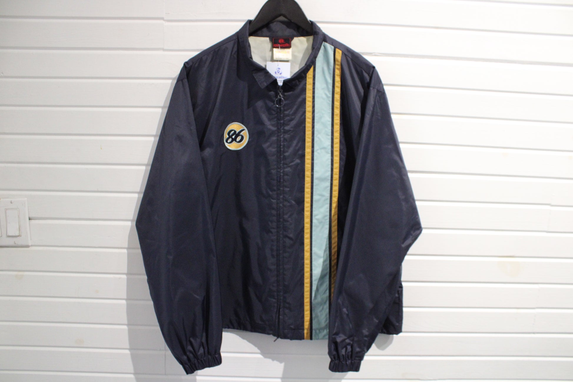 Vintage Airwalk windbreaker jacket with bold front stripes and '86' patch detailing.