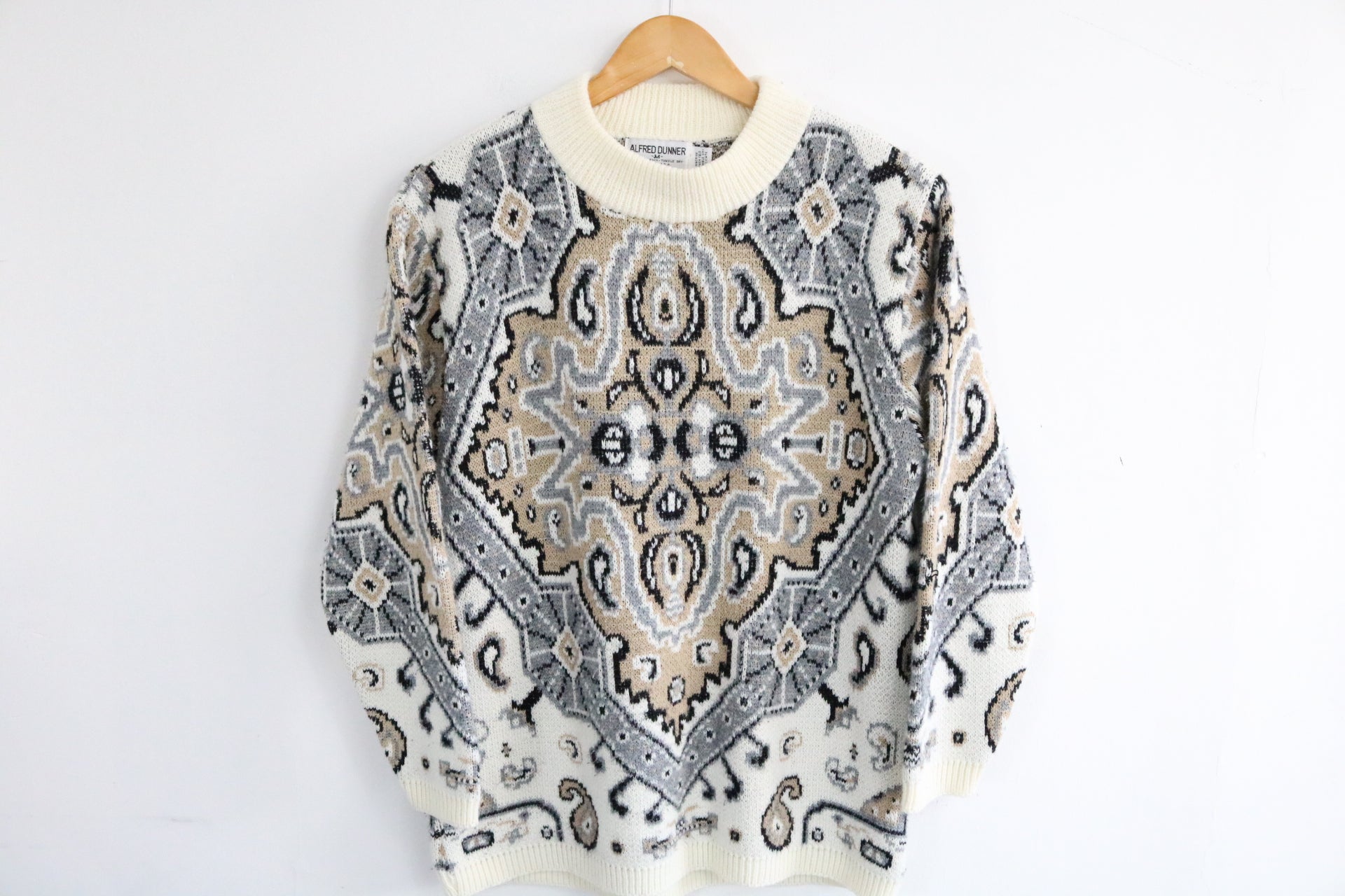 Alfred-Dunner Knit Sweater | Vintage 1980s Ornate Pattern Pullover Crewneck | Classic Knitwear