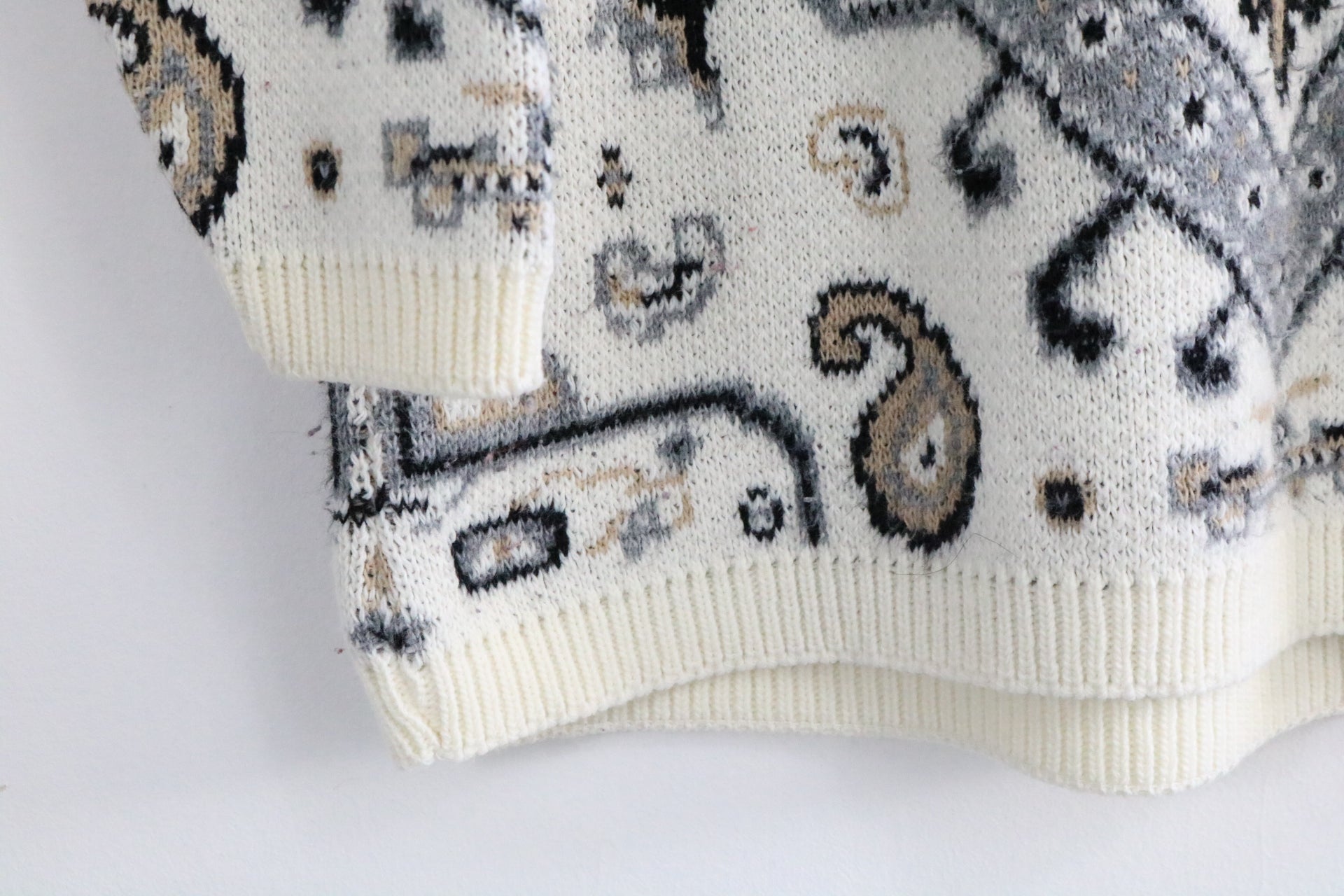 Alfred-Dunner knit sweater featuring a detailed geometric and paisley design in neutral tones