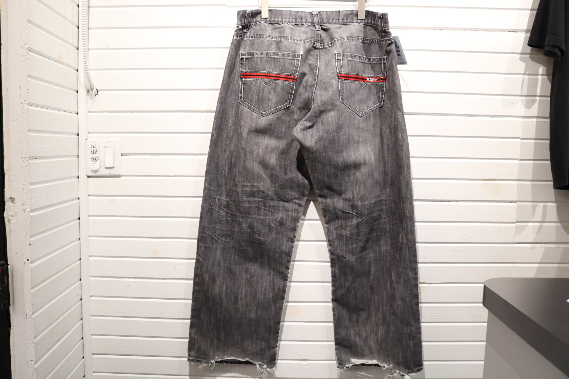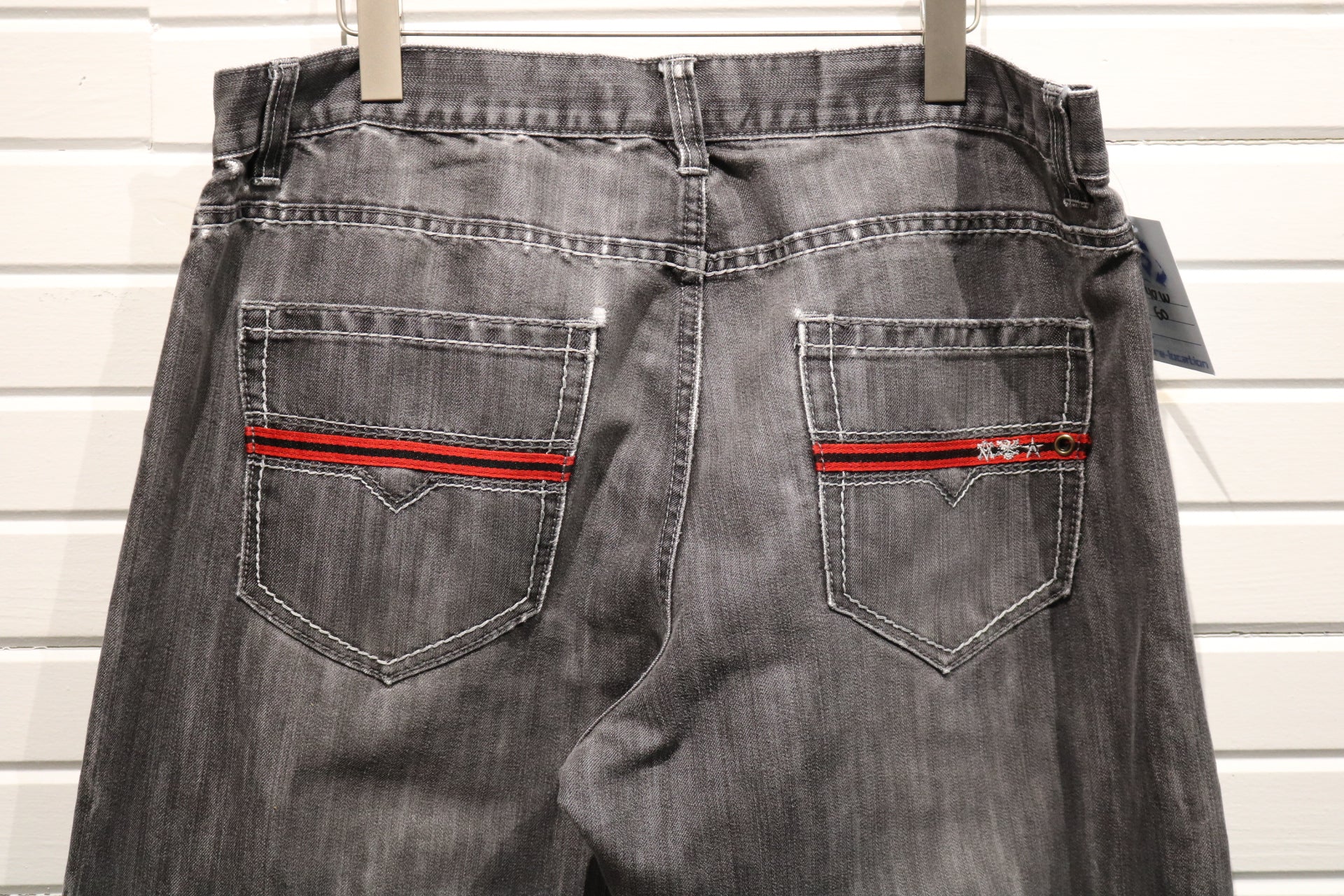 Avirex Jeans | Vintage 2000s Grey Wide-Leg Denim Pants with Red Pocket Accents | Distressed Hem Urban Style