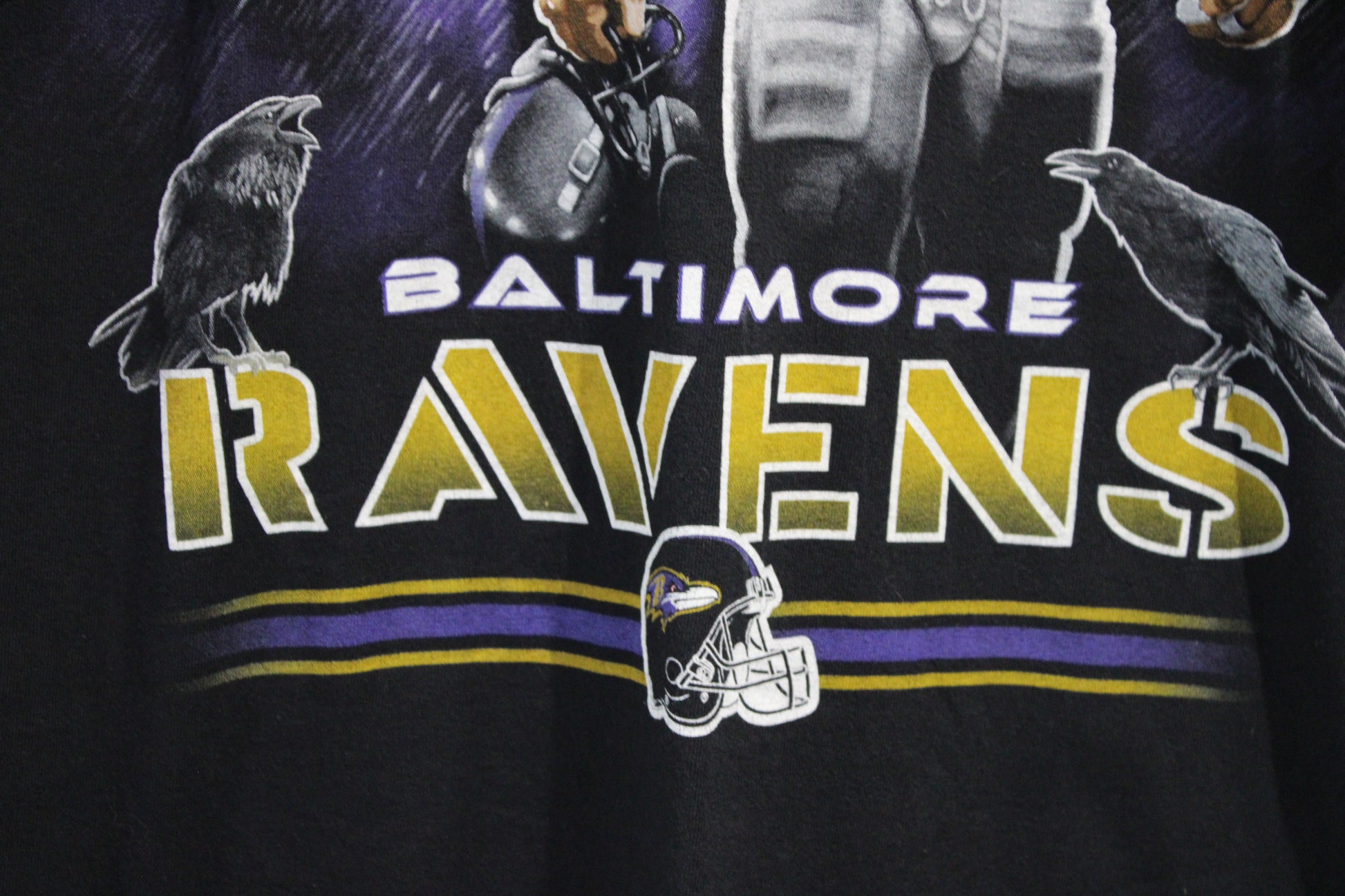 Vintage Baltimore Ravens T-Shirt with bold lightning and player graphic