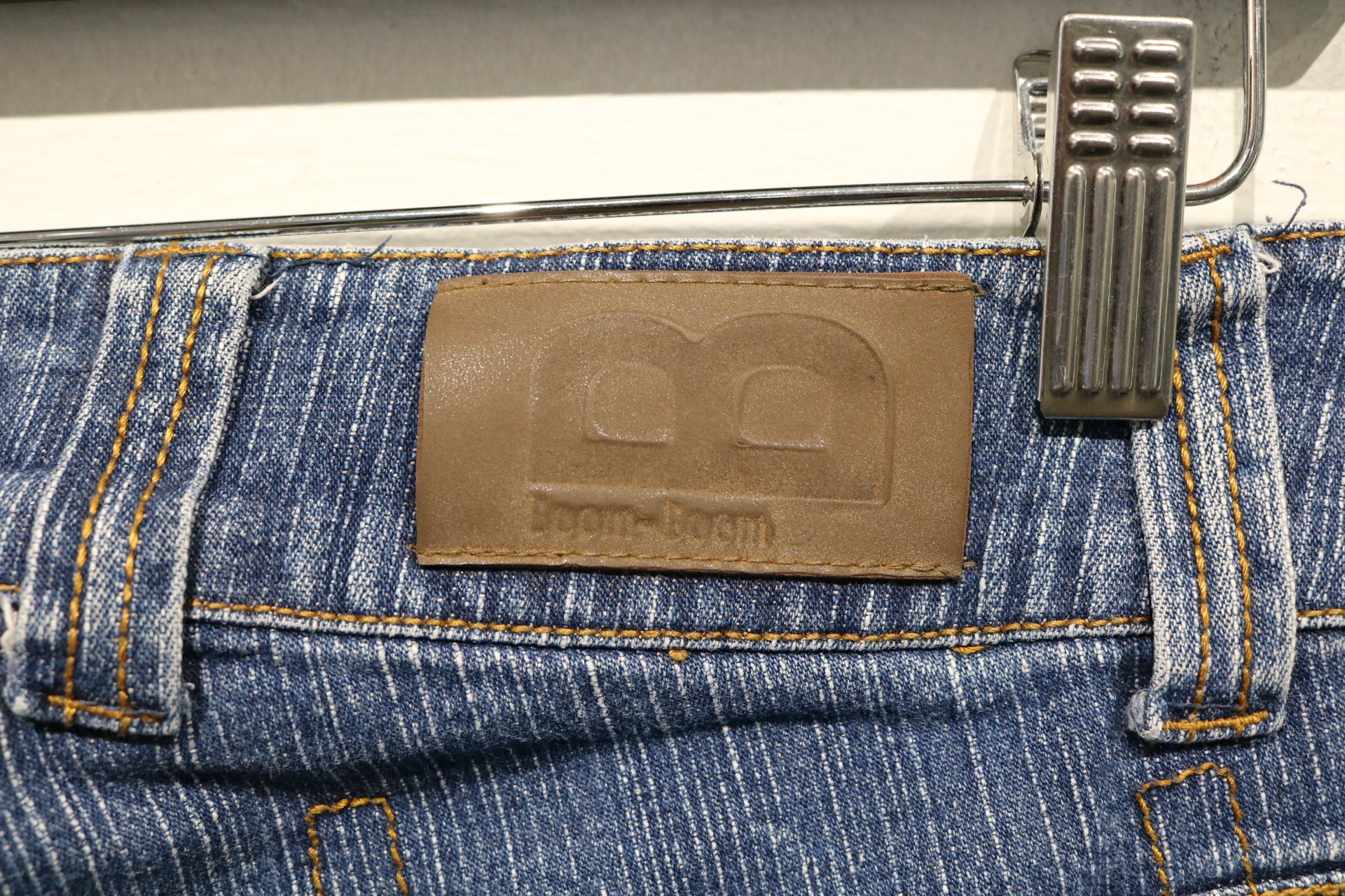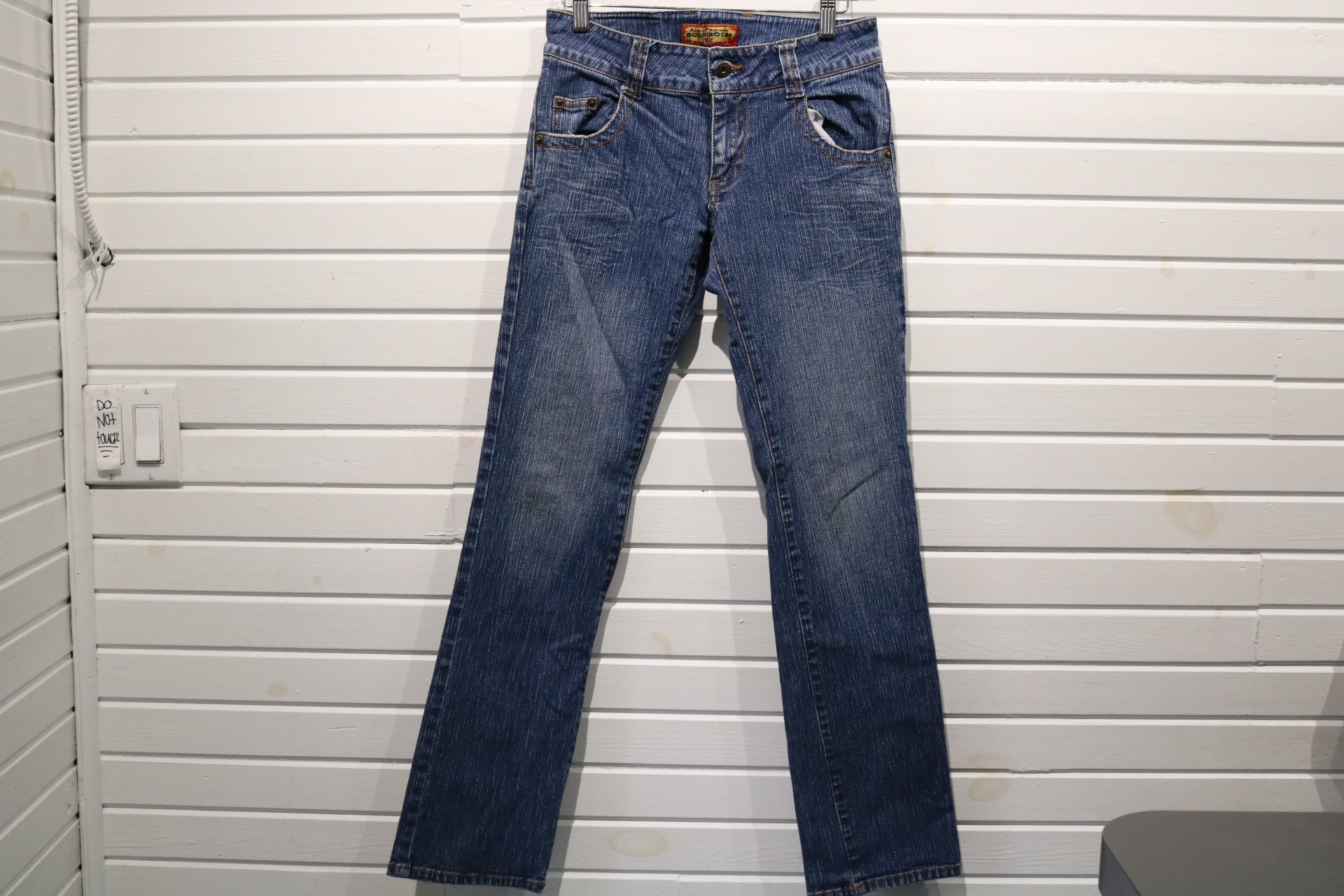 Vintage Boom-Boom Jeans in a classic straight-leg blue denim with faded and whiskered detailing.