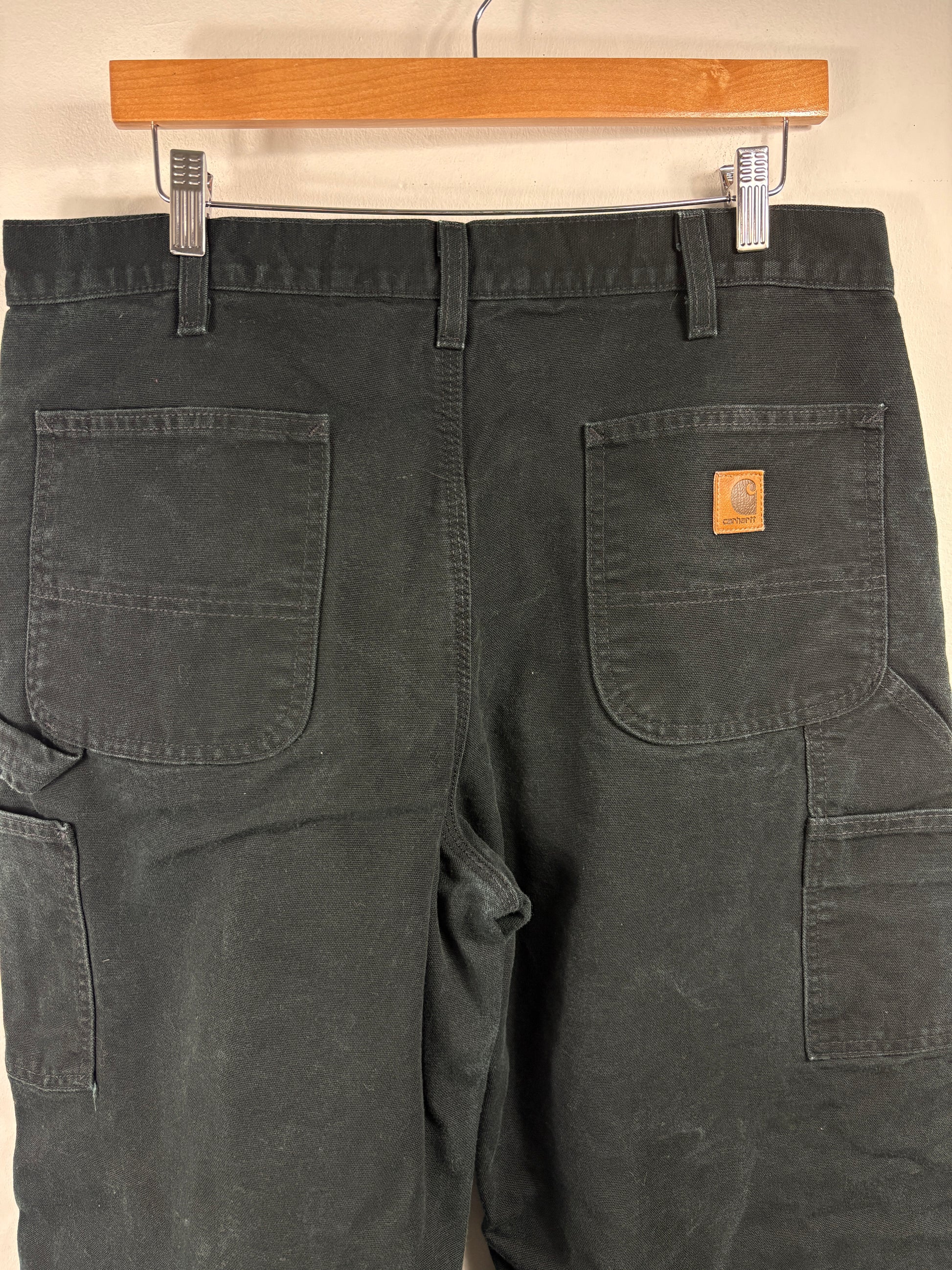 Carhartt black double knee pants with flannel lining and carpenter pockets