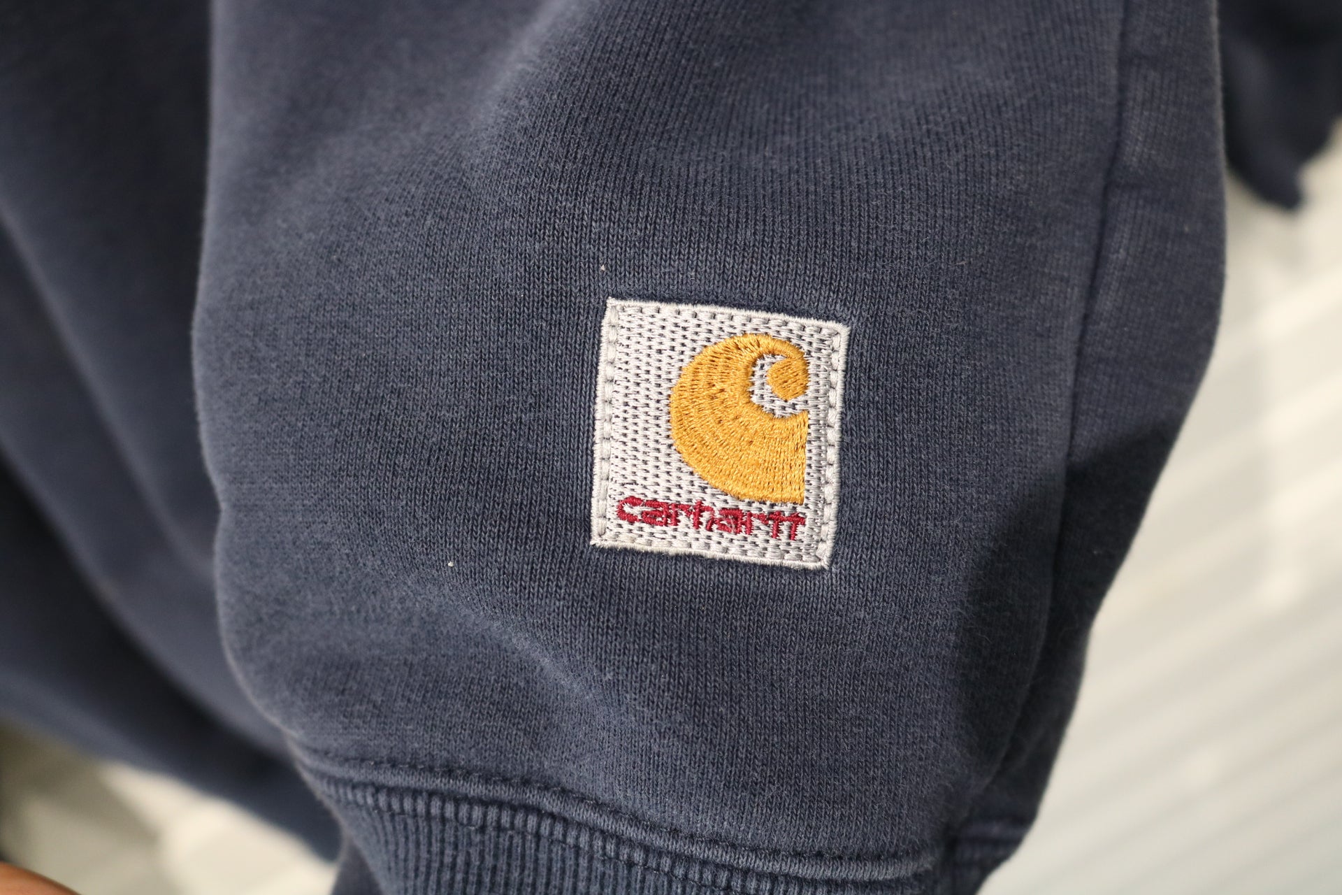 Vintage Carhartt crewneck sweatshirt in navy with a heavyweight feel and classic workwear styling.