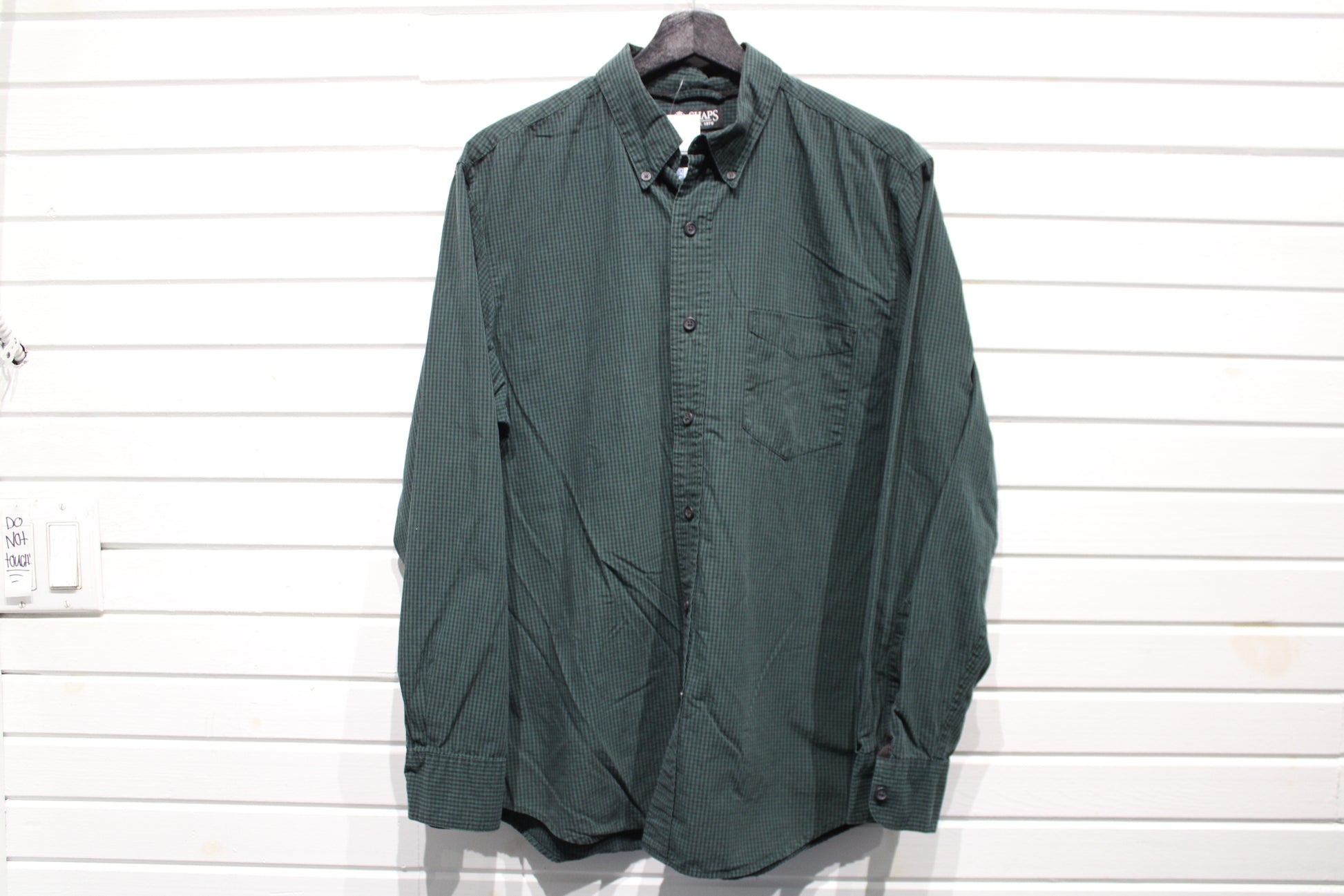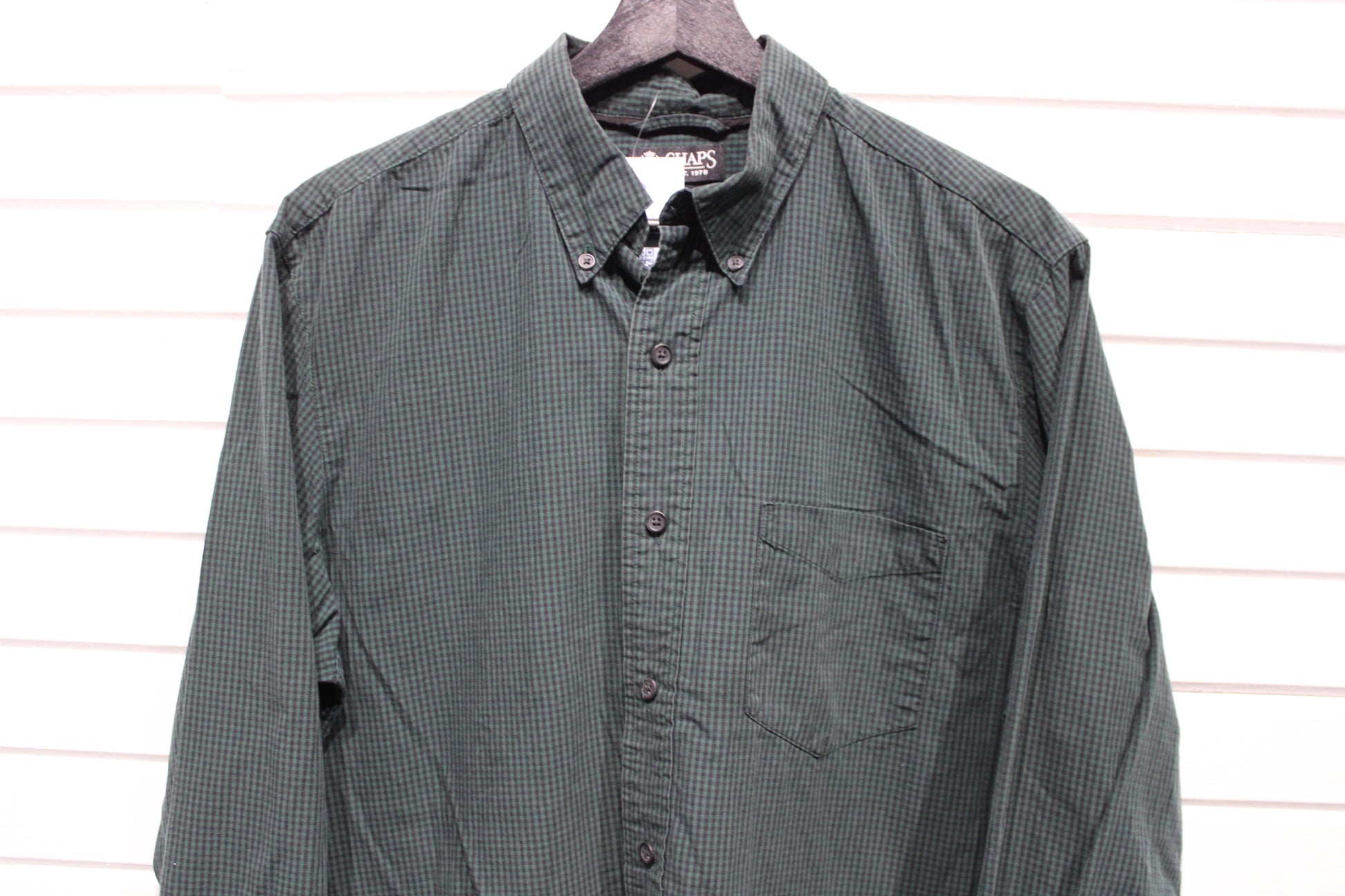 Chaps Button-Up Shirt | Vintage Classic Green Check Casual Shirt | Everyday Long Sleeve Top