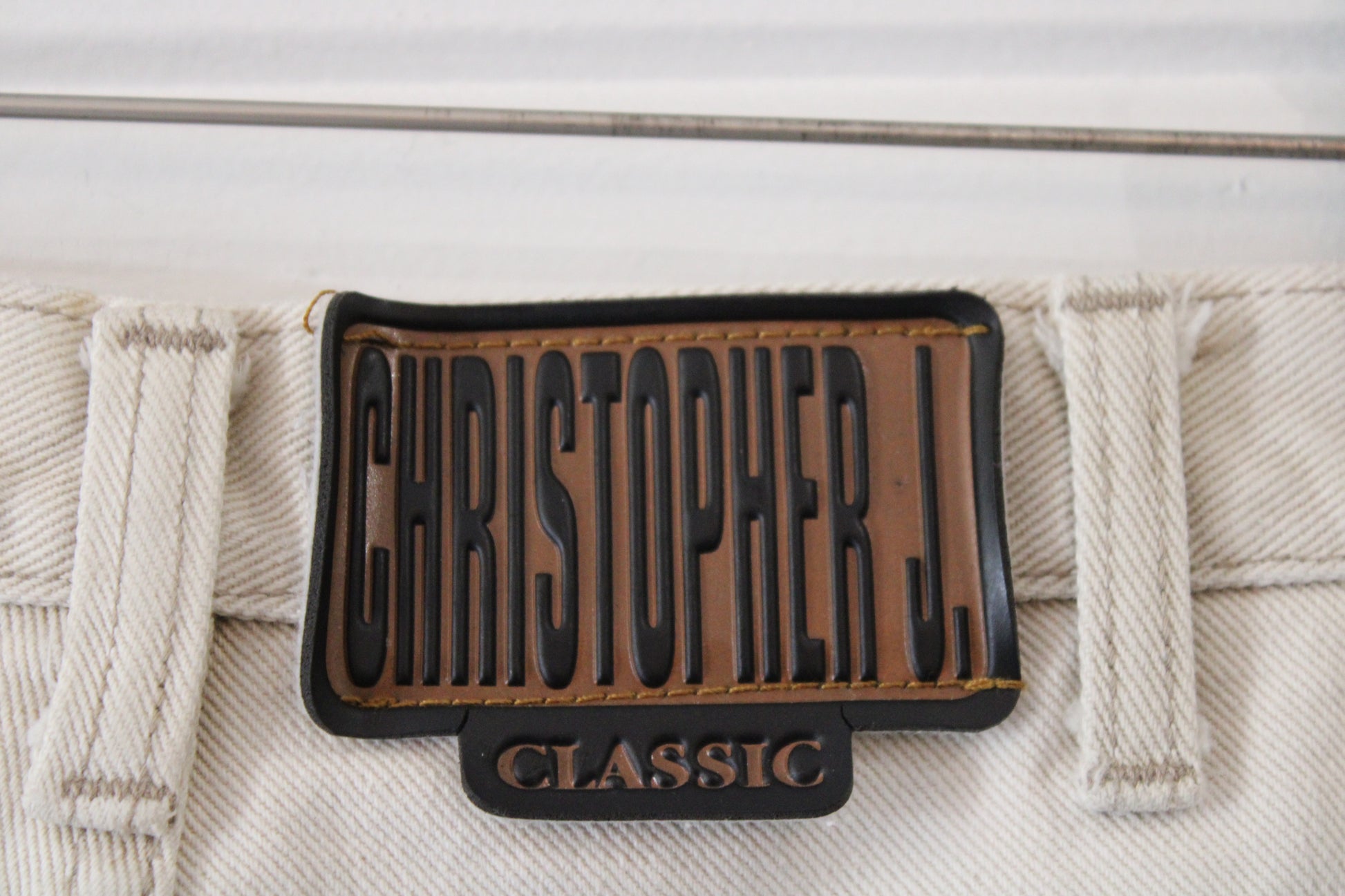 Vintage Christopher-J. Classic off-white denim shorts with a relaxed fit and signature back patch.