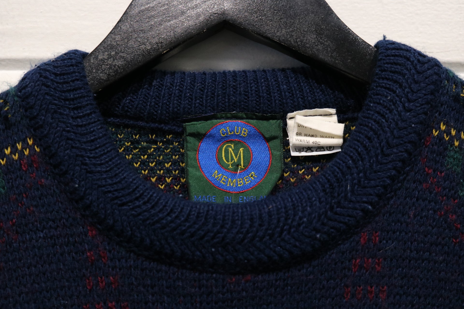 Club-Member Sweater | Vintage 1980s Geometric Pattern Knit Pullover | Classic Cozy Layer