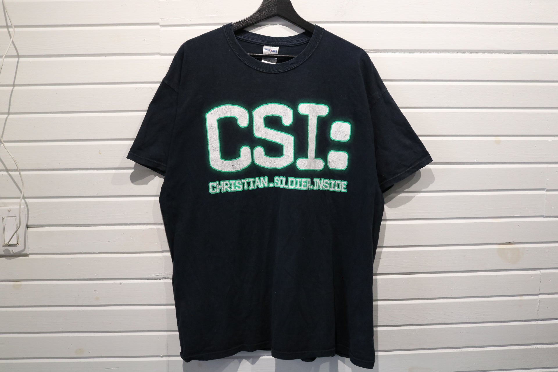 Vintage CSI Christian Soldier Inside graphic t-shirt with bold front print and classic fit.