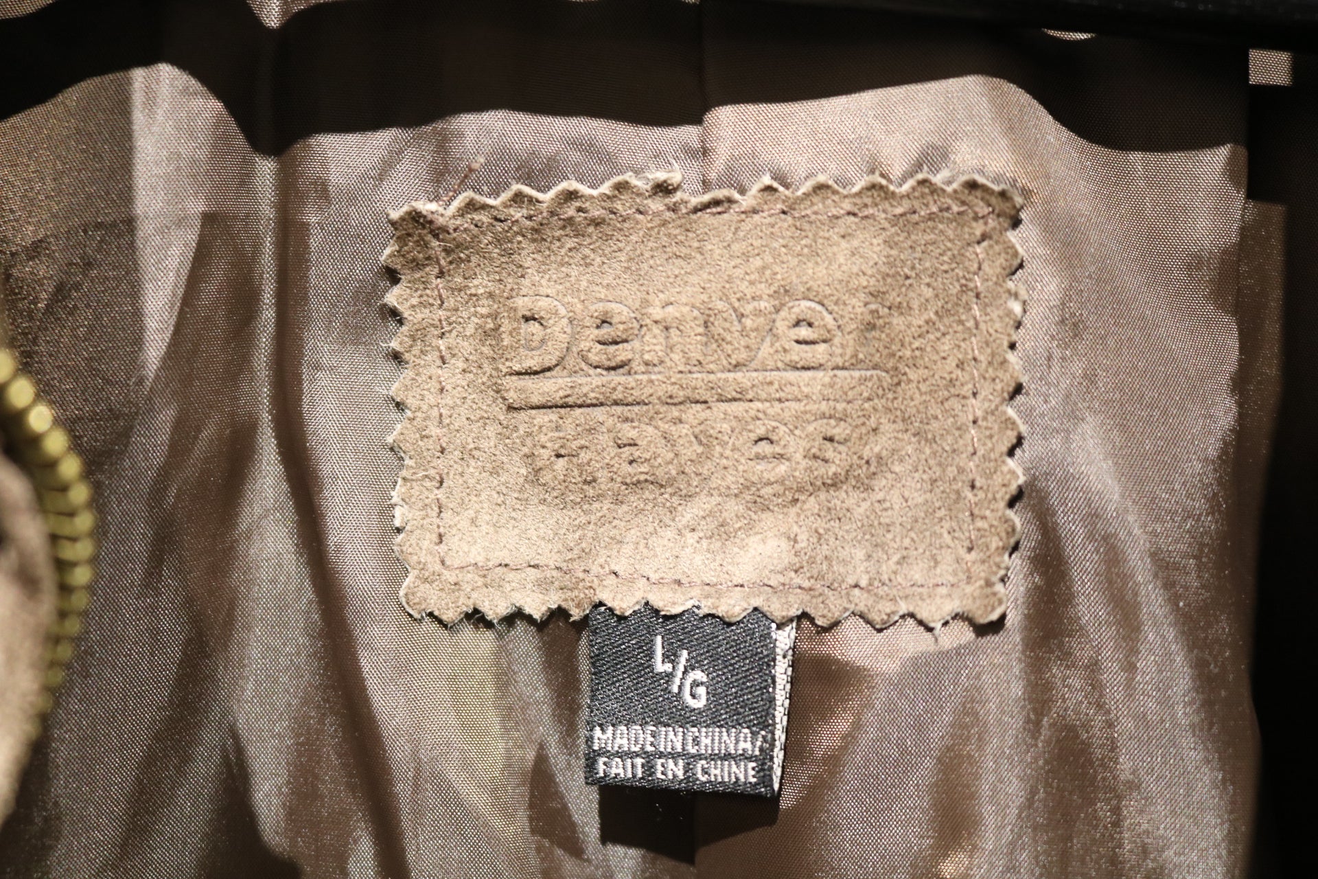 Vintage Denver-Leathers suede zip-up jacket in a soft brown tone.
