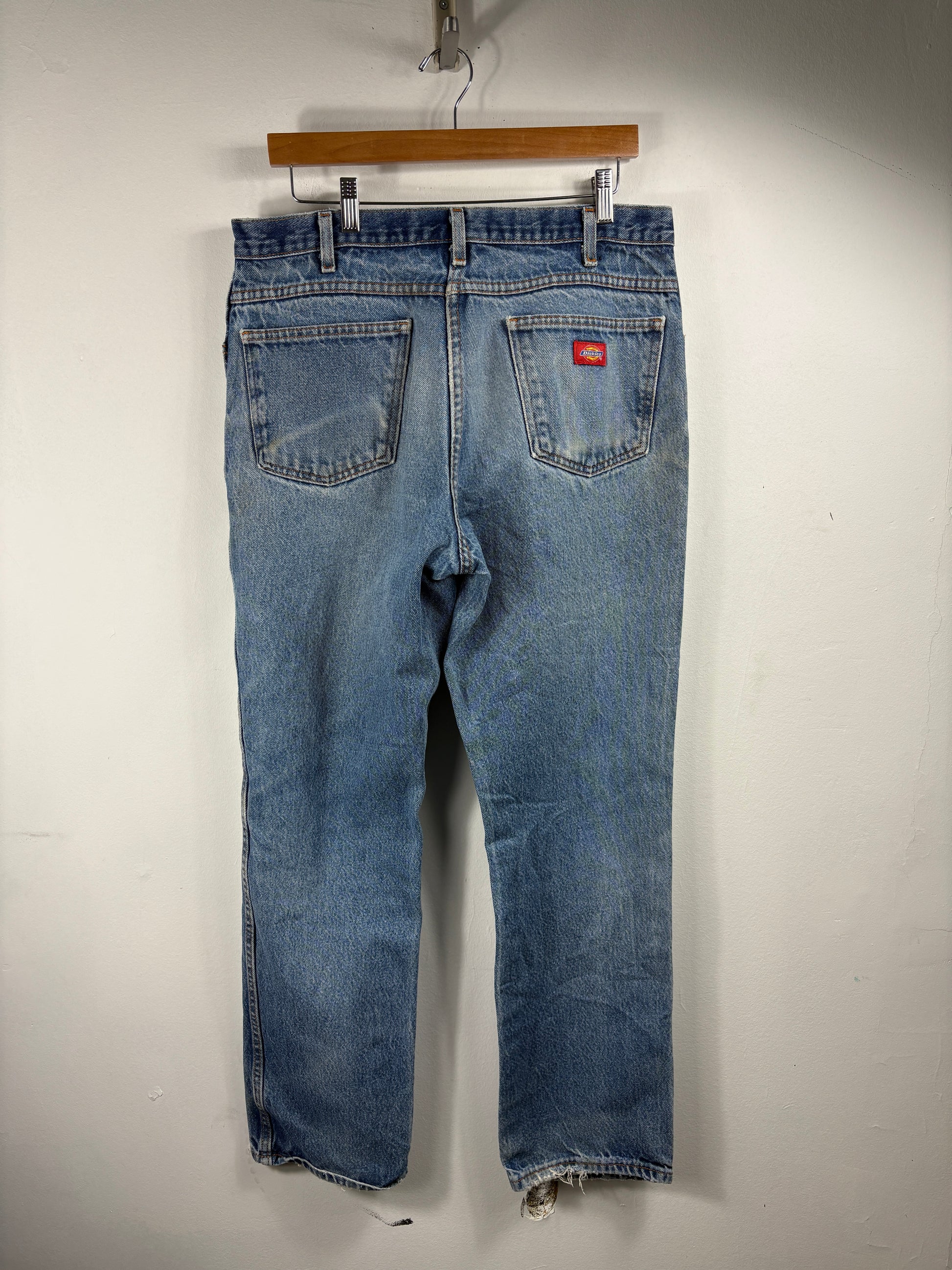Vintage Dickies blue jeans with classic faded wash and authentic wear.