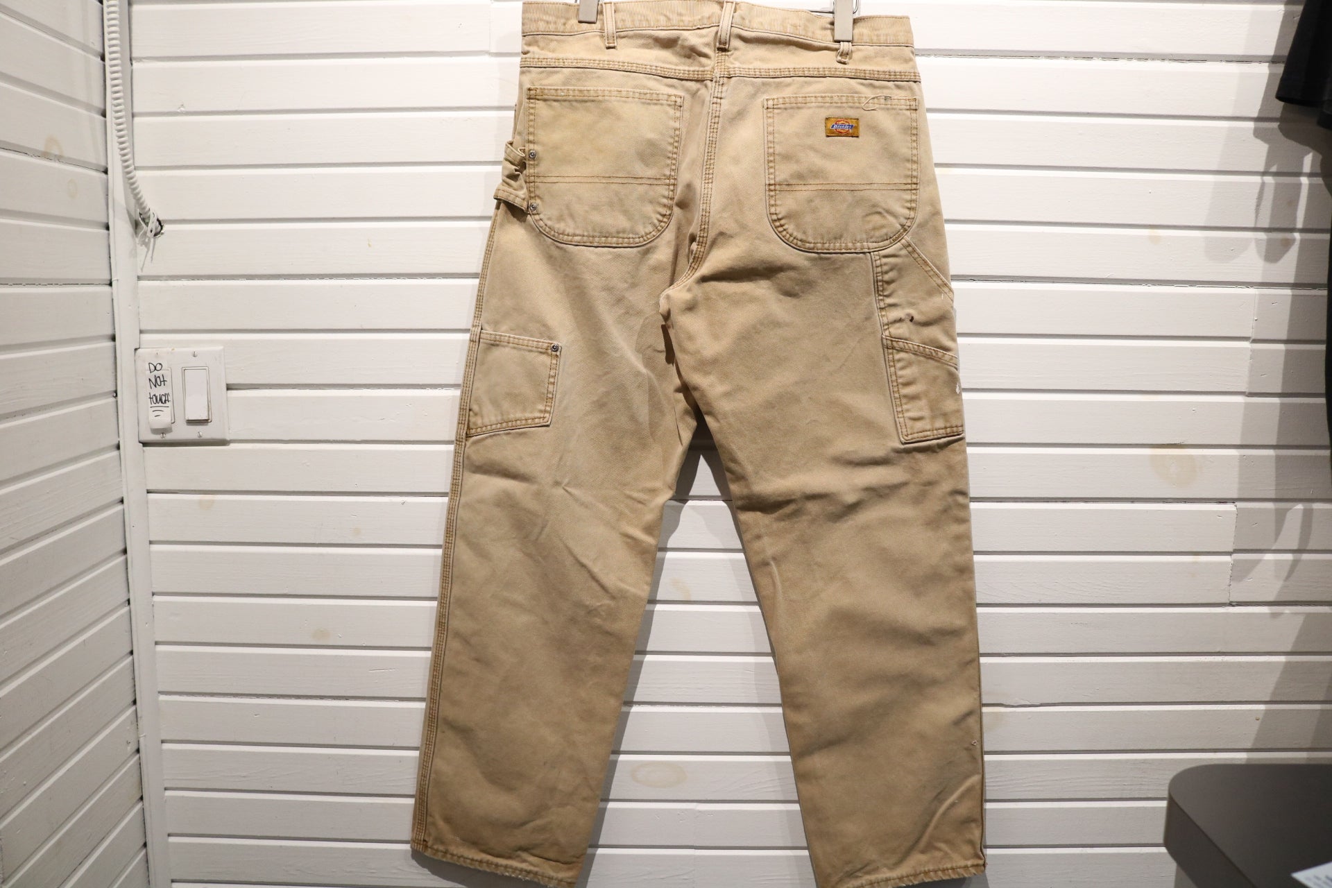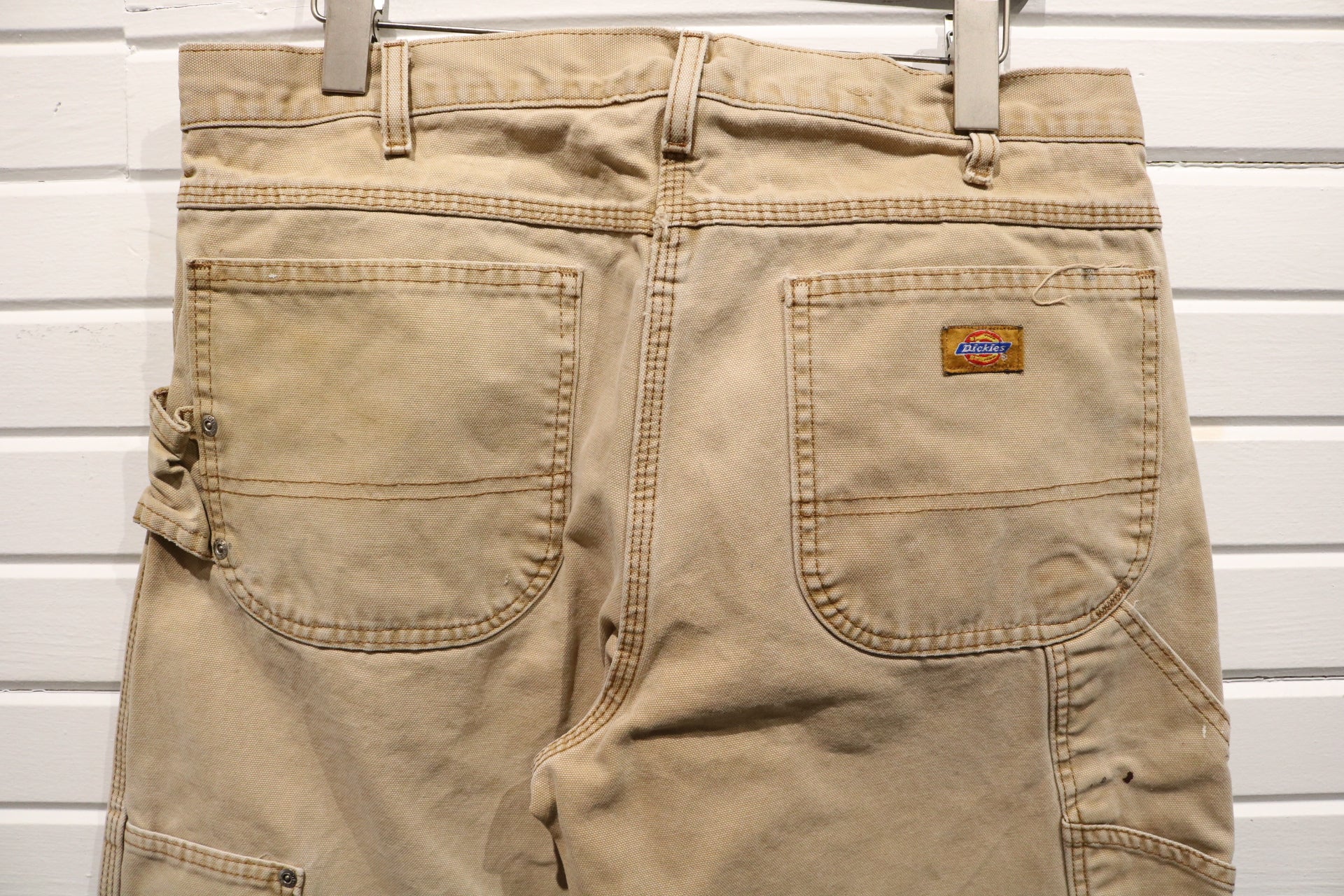 Vintage Dickies Carpenter Pants with a relaxed fit, featuring utility pockets and paint marks for an authentic workwear look.
