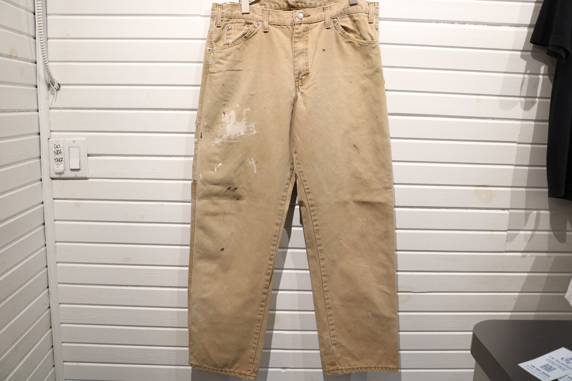 FLAWS: Heavy paint stains on the front thigh and scattered wear on legs - Please See Pictures For Any Wear/Tear - If There Are No Pictures Of Specific Flaws, The Item Is FLAWLESS