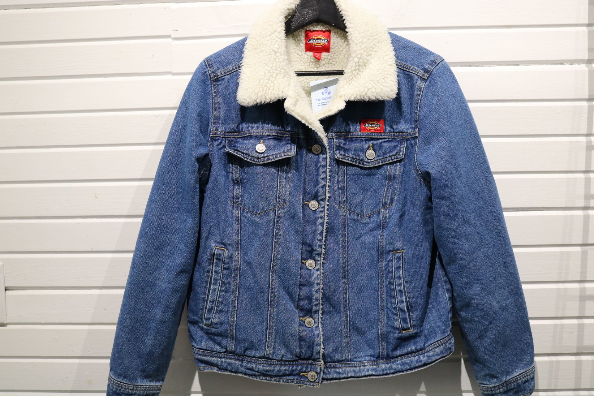 Vintage Dickies denim sherpa jacket with a faux shearling collar and classic blue wash.