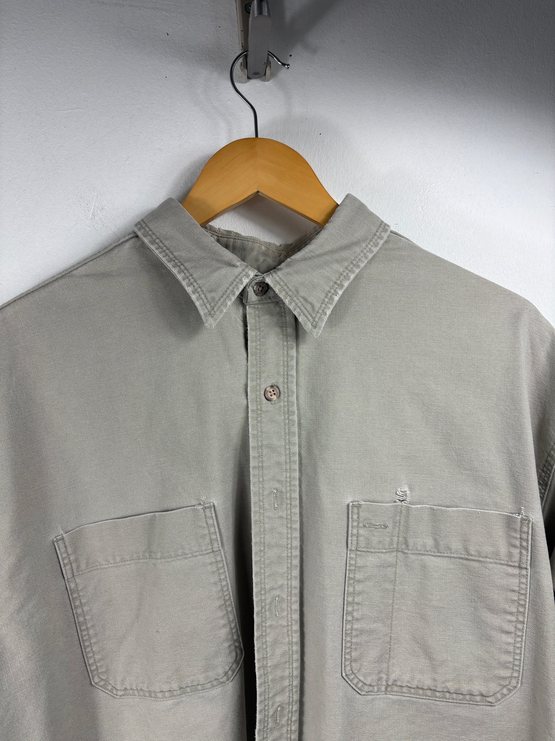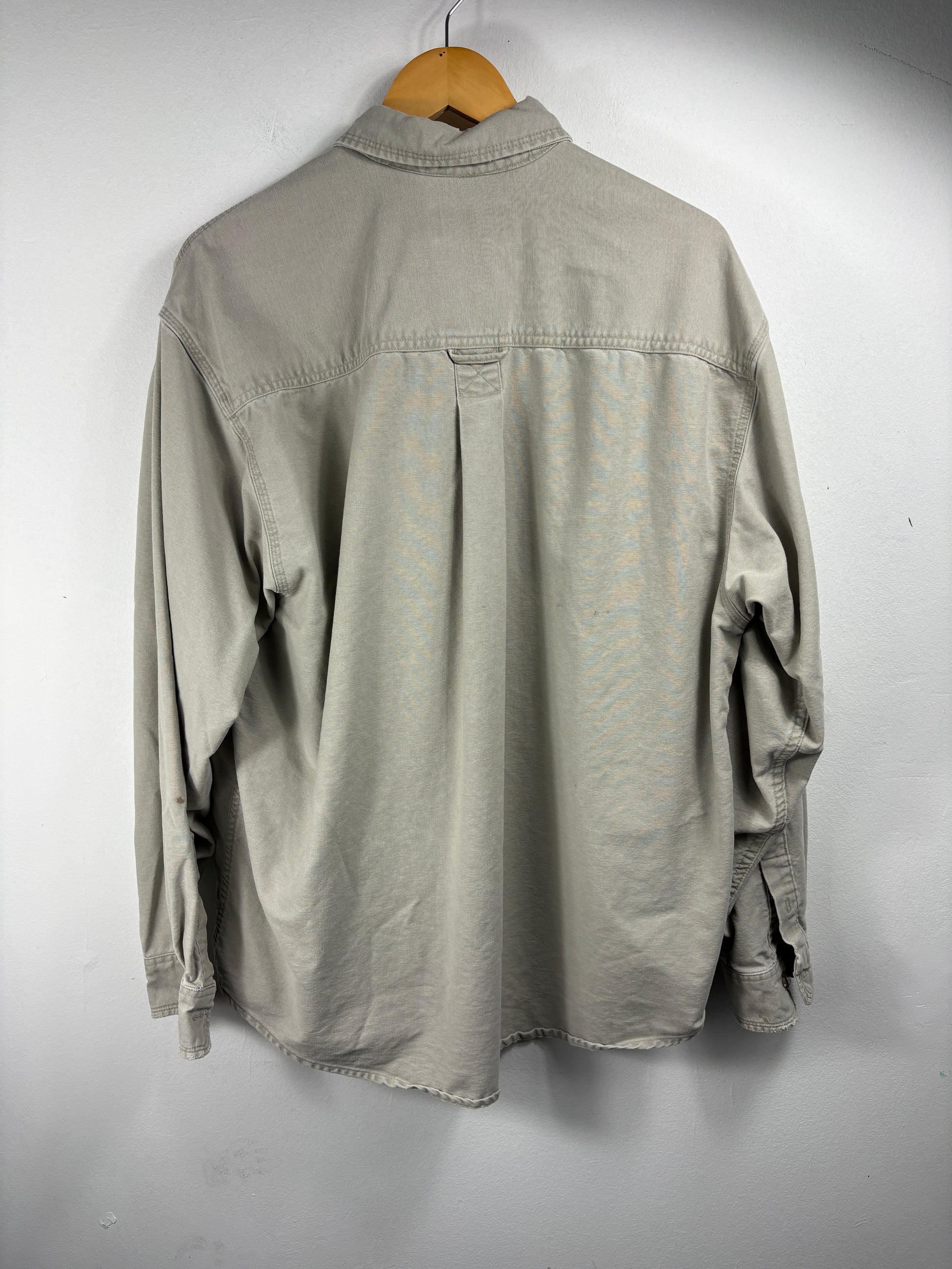 Eddie-Bauer Button-Up Shirt | Vintage 90s Heavyweight Utility Overshirt | Workwear Inspired Cotton Shirt | Taupe