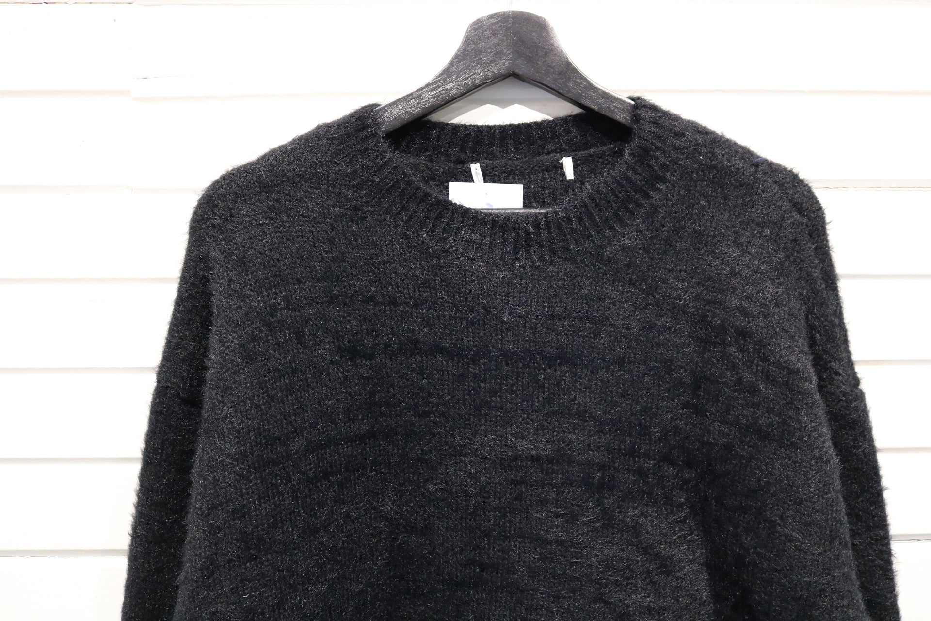 Flame graphic vintage knit sweater with shaggy texture and relaxed fit