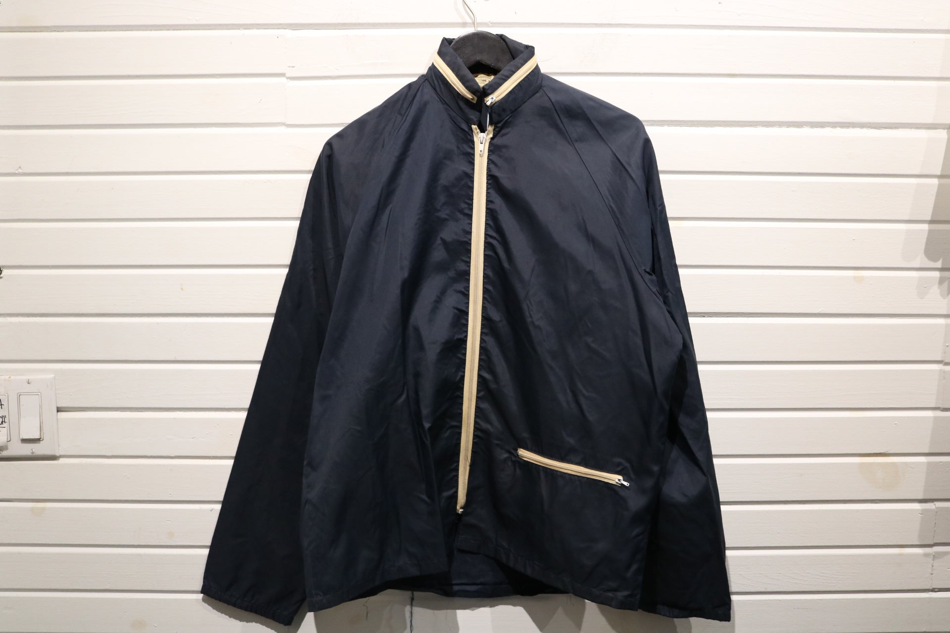 Hollywood Design Zip-Up Jacket | Vintage 1970s Navy Nylon Windbreaker | Contrast Trim Outerwear