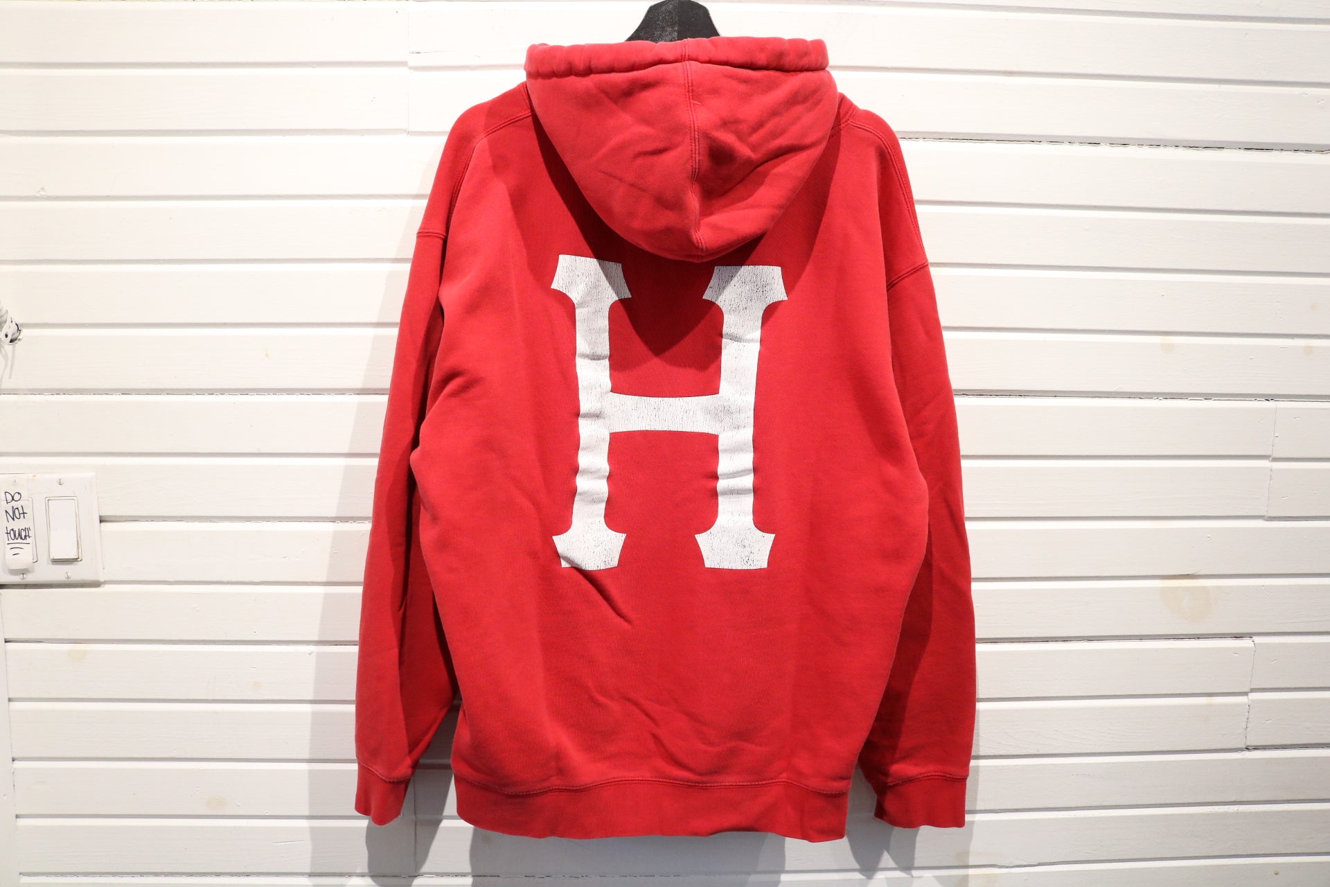 Vintage HUF Thrasher Hoodie with bold front and back graphic.