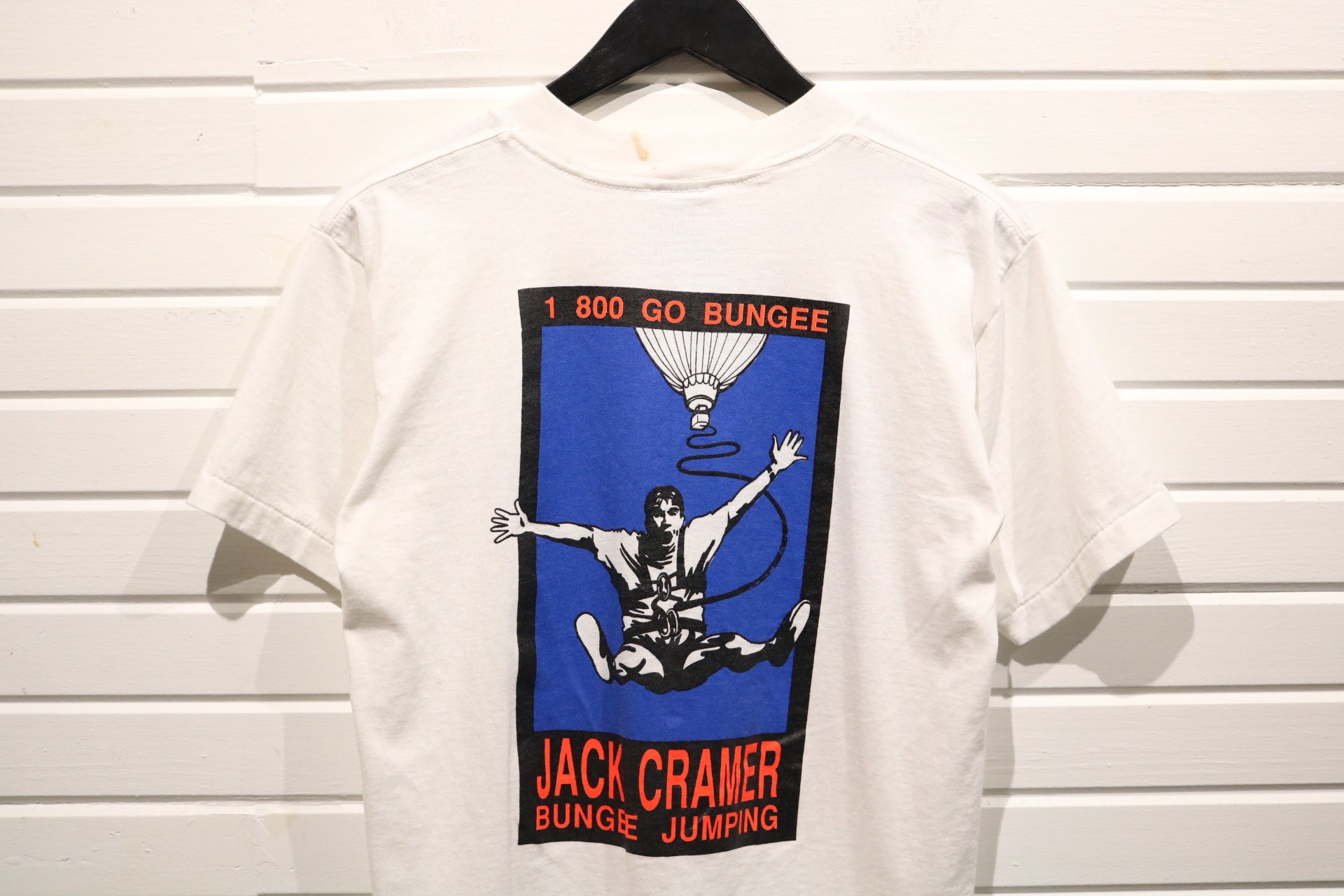 Vintage Jack-Cramer bungee jumping t-shirt featuring a bold 'Just Did It!' parody graphic and colorful back print.