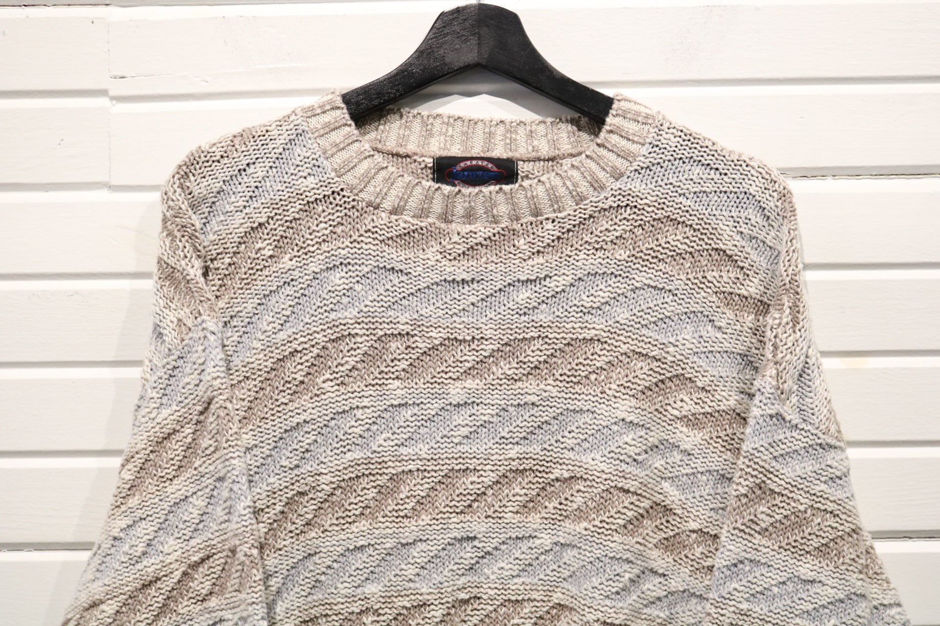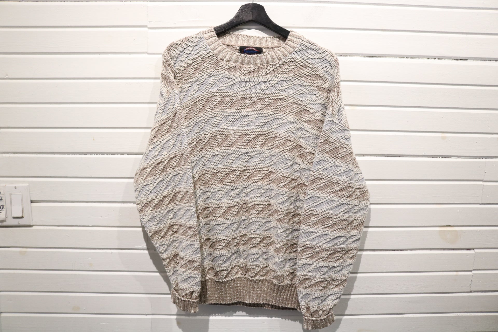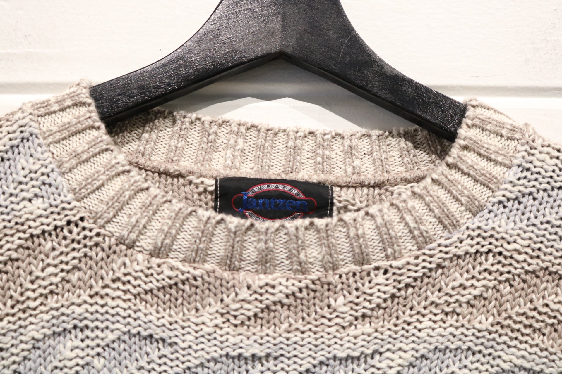 Vintage Jantzen cable knit crewneck sweater in a neutral textured pattern
